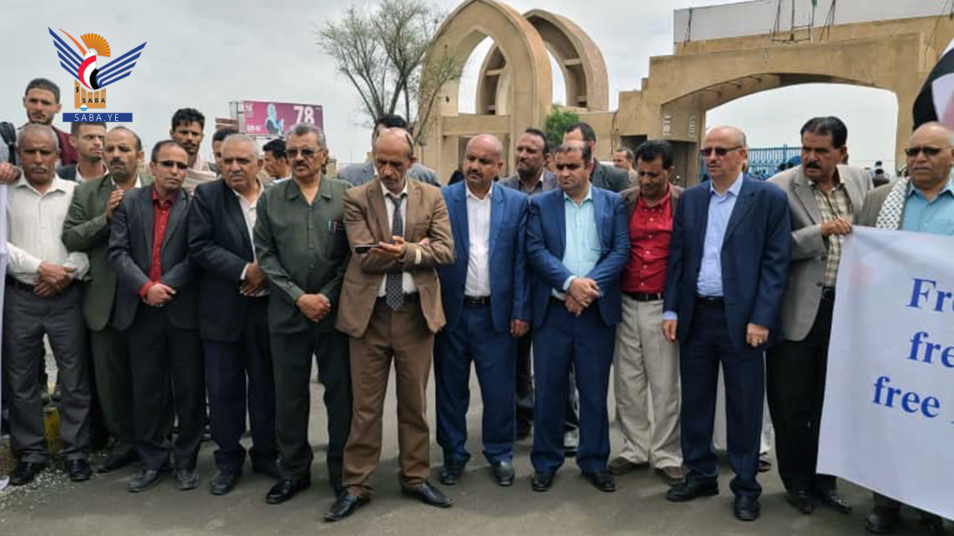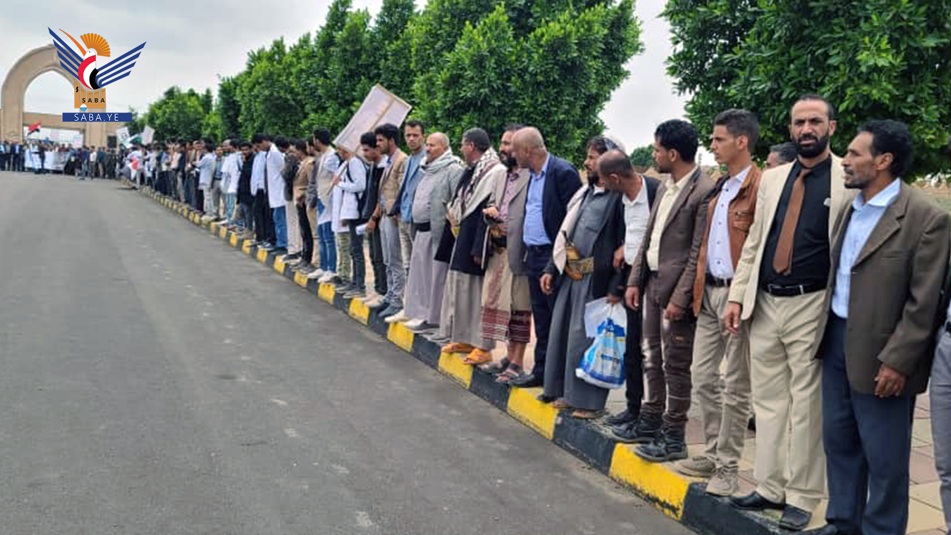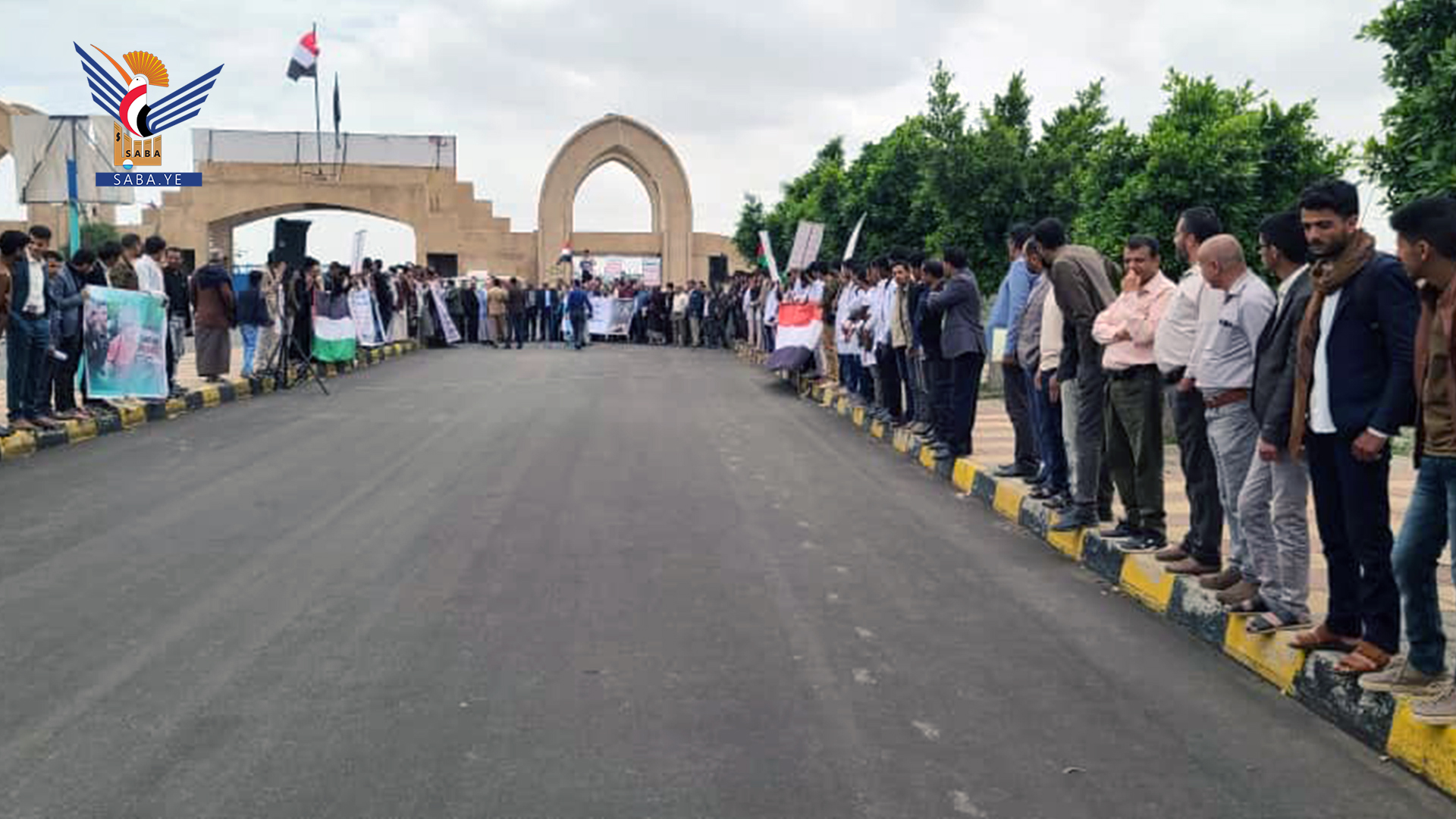 نظم منتسبو جامعة ذمار اليوم وقفة احتجاجية تنديداً باستمرار المجازر بحق الشعب الفلسطيني وتضامناً مع الحراك الأكاديمي والطلابي في الجامعات الأمريكية والأوروبية الذين يتعرضون لقمع واعتقالات على خلفية موقفهم المناصر للشعب الفلسطيني في قطاع غزة.