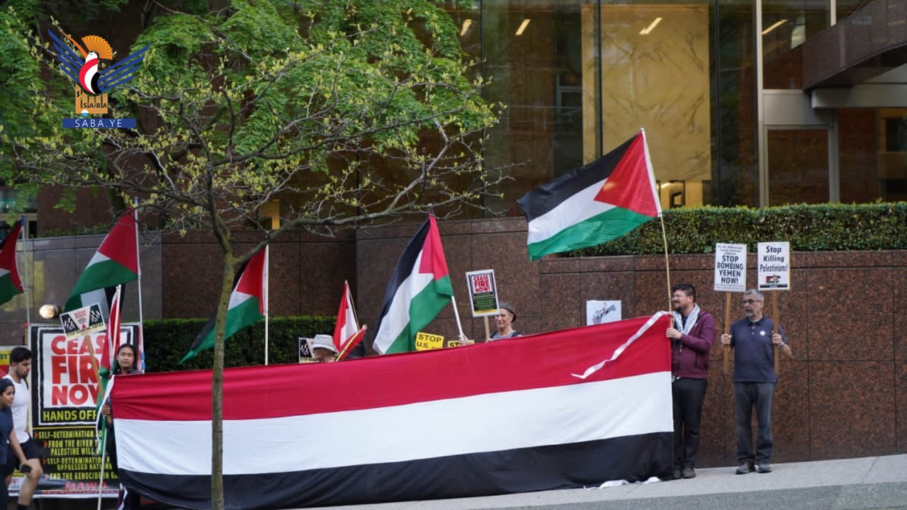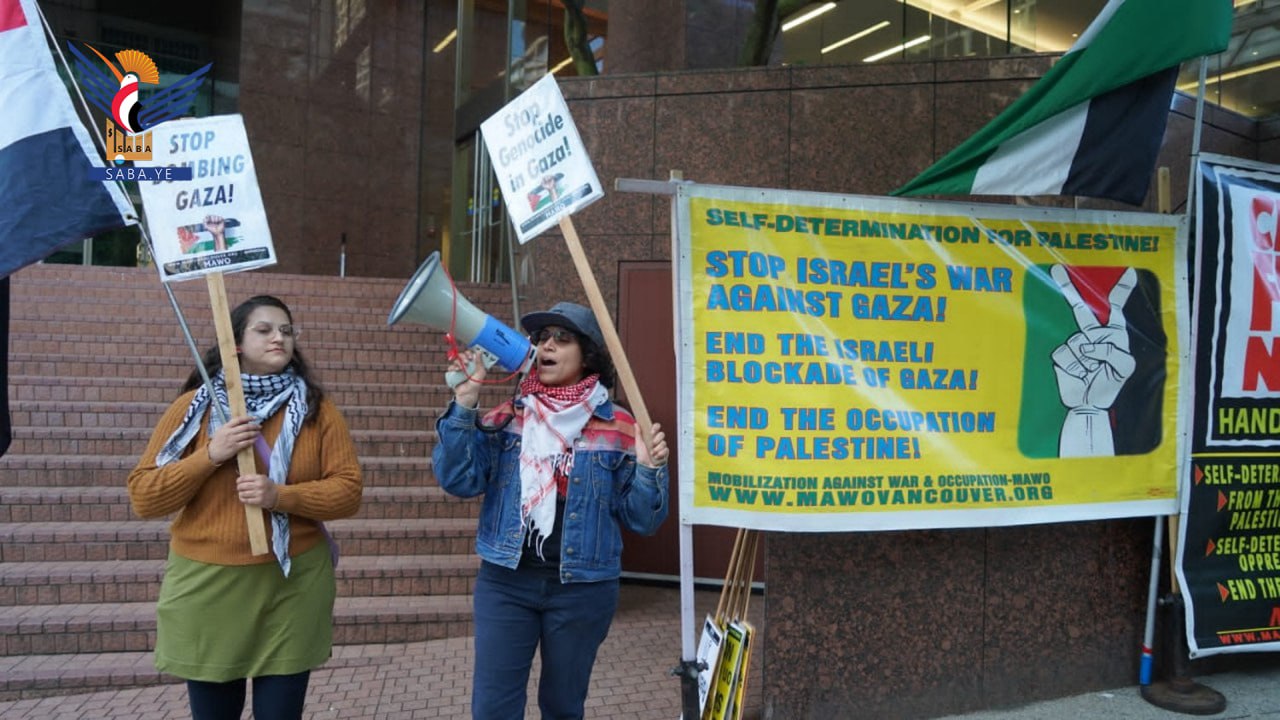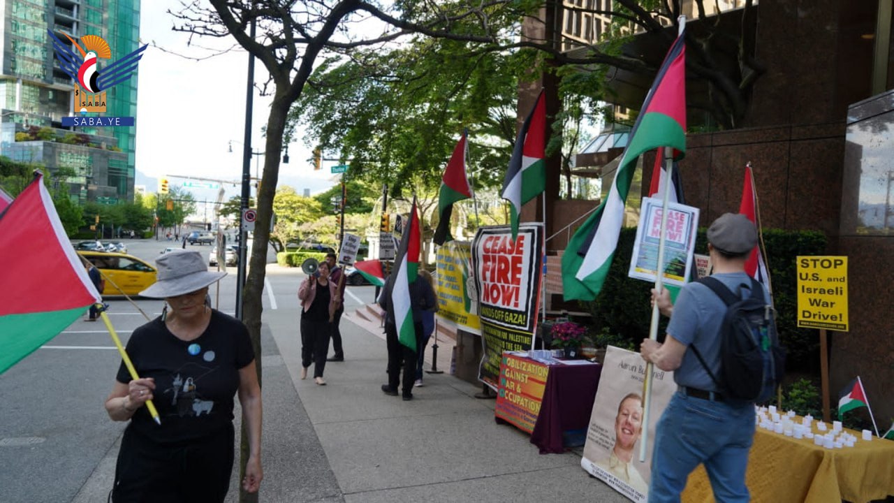 أقام ناشطون سلميون، الإثنين، وقفة احتجاجية رمزية معبرة أمام القنصلية الأمريكية في مدينة فانكوفر الكندية للتضامن مع فلسطين واليمن، وإحياء للذكرى الـ76 للنكبة في فلسطين.