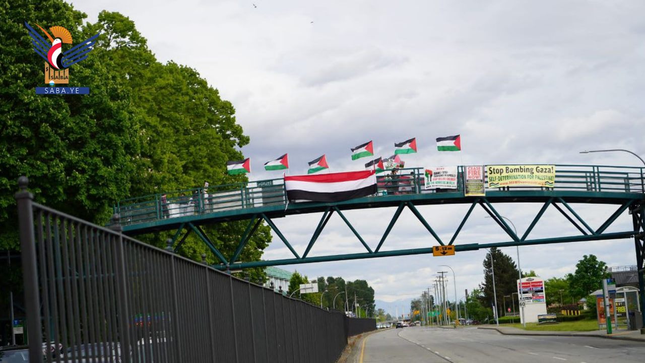 ووقف المتظاهرون على الجسور المطلة على الخطوط الرئيسية للسيارات في طريق عودة عشرات الآلاف من الموظفين الكنديين إلى منازلهم.. مطالبين بوقف العدوان الأمريكي البريطاني عن اليمن.