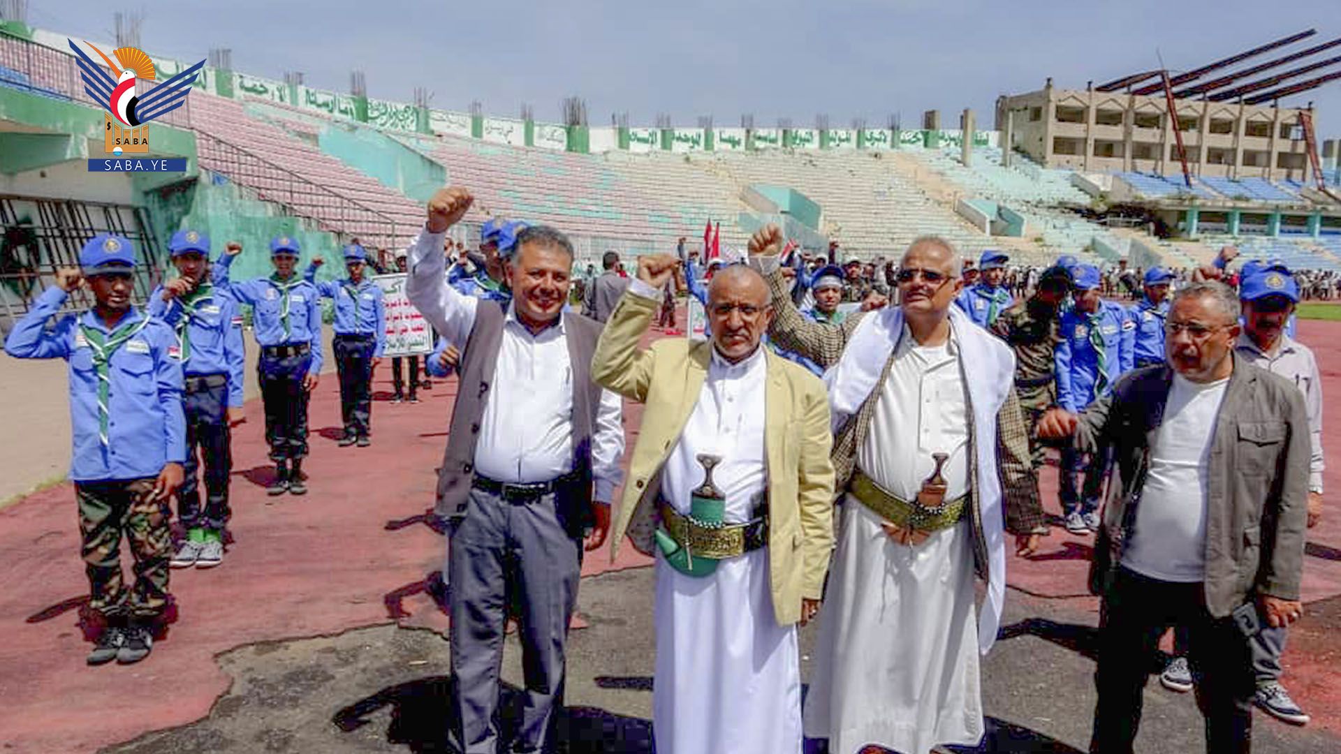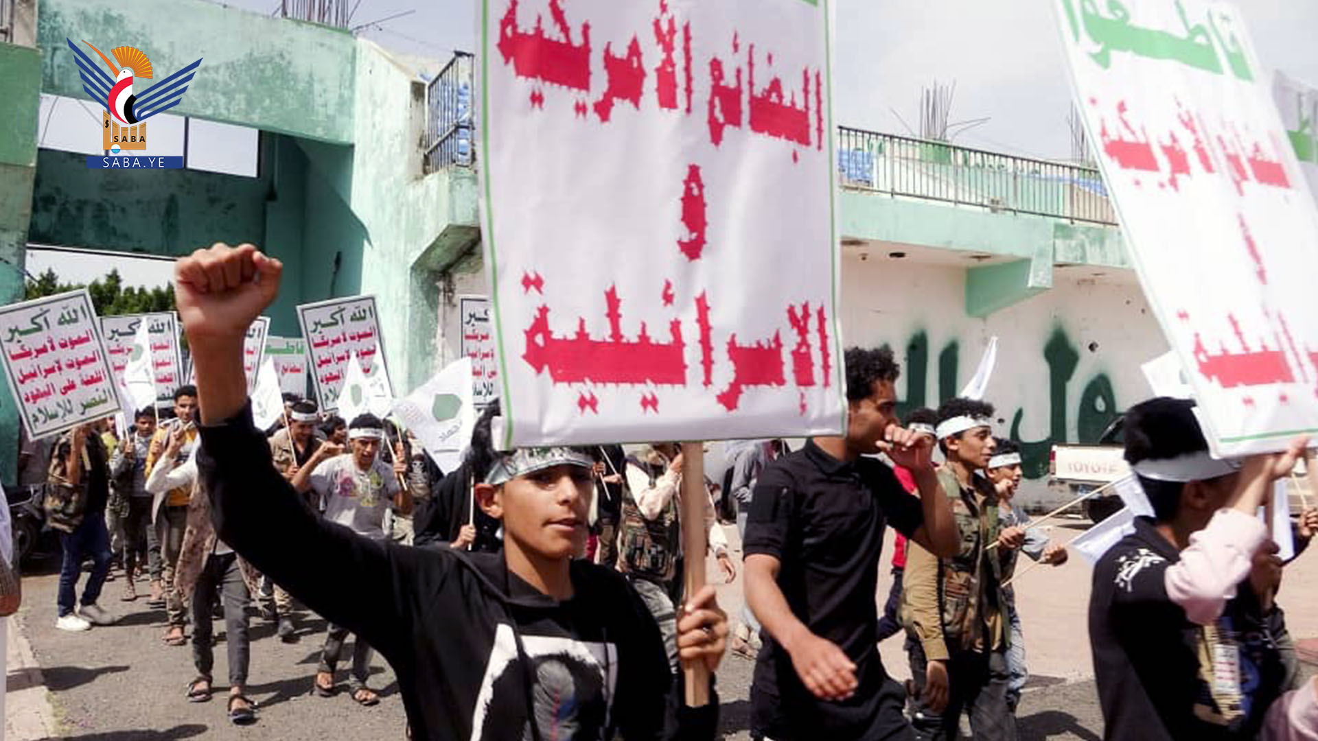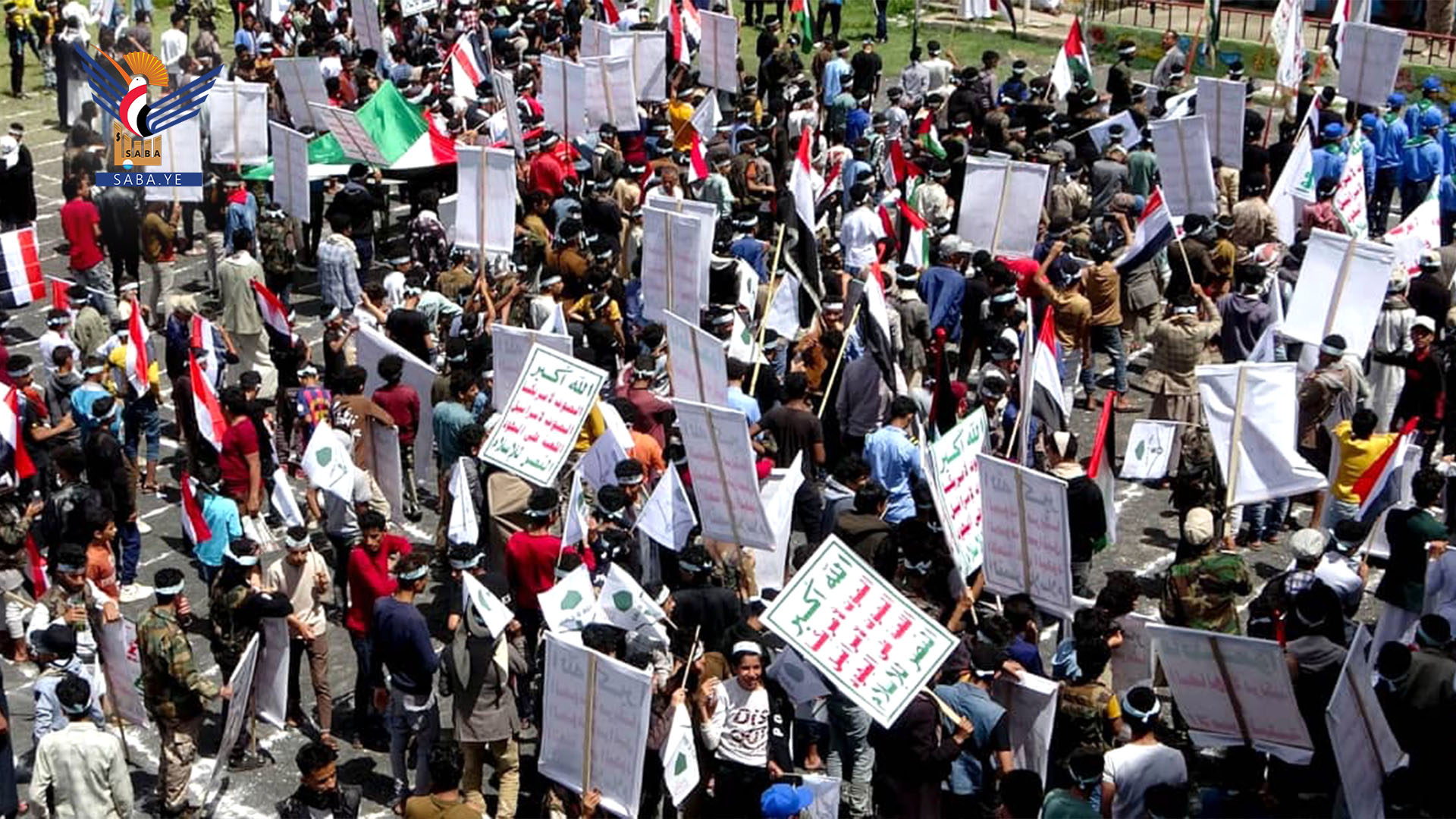وردد المشاركون في المسير الذي أنطلق من إستاد إب الرياضي إلى مدرسة شهيد القرآن بالظهار بحضور مسؤول التعبئة العامة عبدالفتاح غلاب ومديري مكتبي التربية والتعليم محمد درهم الغزالي والشباب والرياضة إبراهيم المساوى شعارات البراءة من أعداء الله.