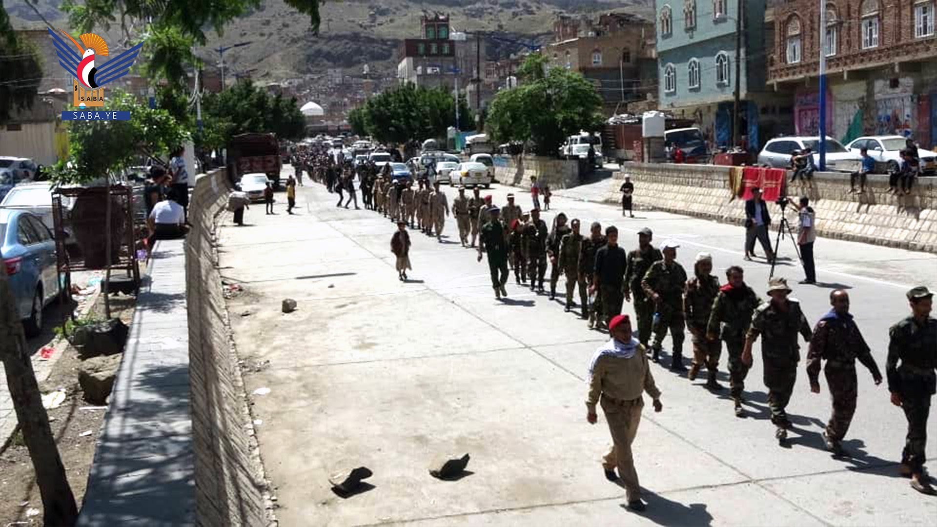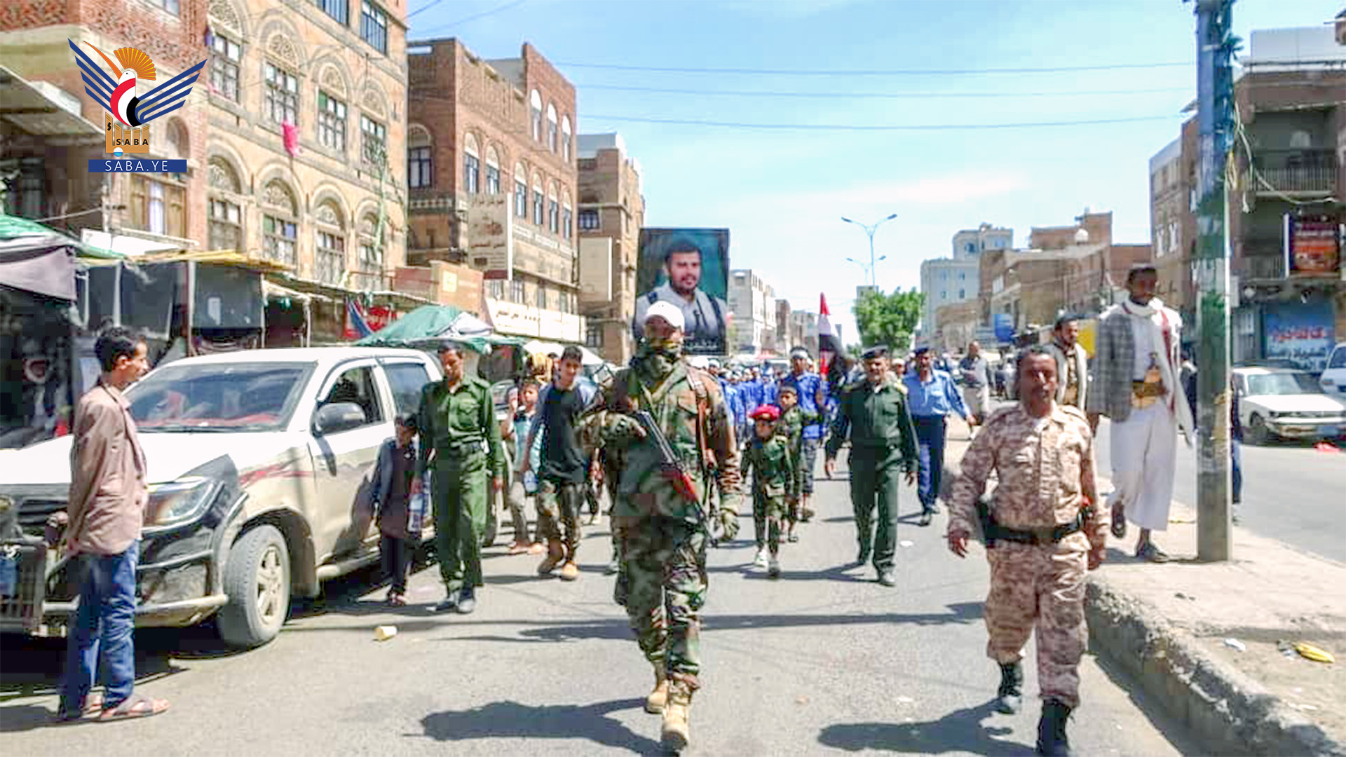 شهدت مديرية آزال في أمانة العاصمة، اليوم، مسيراً شعبياً وعسكرياً لخريجي دورات طوفان الأقصى والتعبئة العامة، بمناسبة الذكرى السنوية للصرخة والعيد الوطني الـ 34 للجمهورية اليمنية 22 مايو.