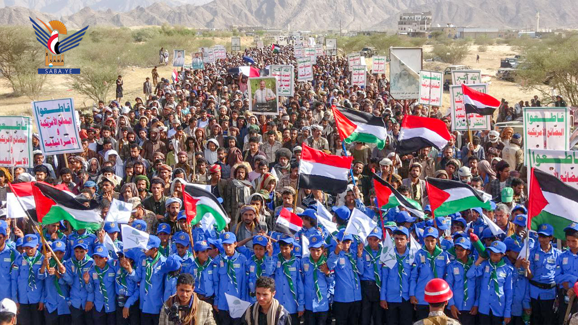 وطالب بيان المسيرات بفتح ممرات برية آمنة تسمح للشعب اليمني بالمشاركة المباشرة في القتال إلى جانب الأشقاء في فلسطين المحتلة ضد العدو الصهيوني الأمريكي المجرم.
