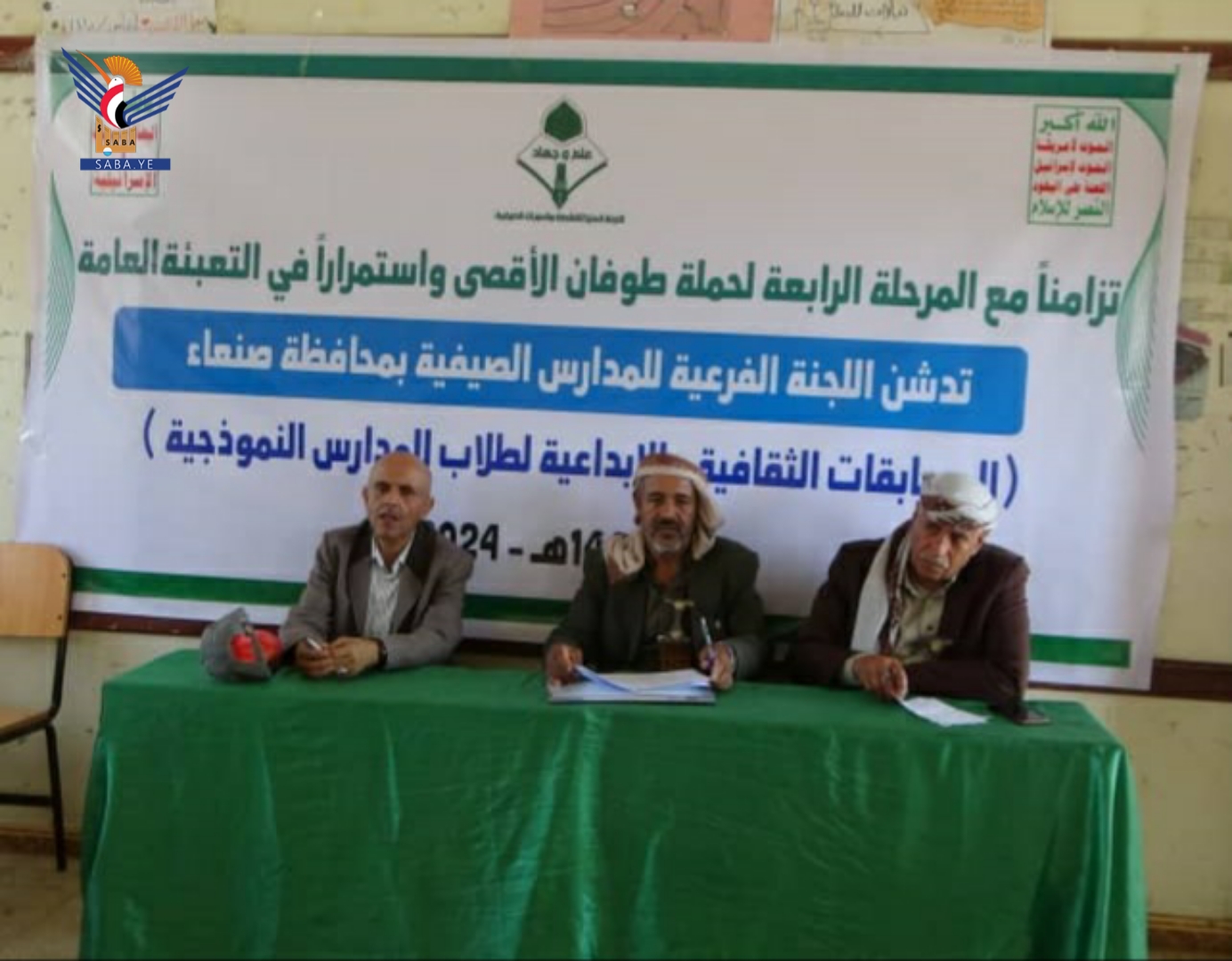 دشنت اللجنة الفرعية للدورات الصيفية في محافظة صنعاء، اليوم، المسابقات الثقافية والإبداعية لطلاب المدارس الصيفية النموذجية، تحت شعار "علم وجهاد".