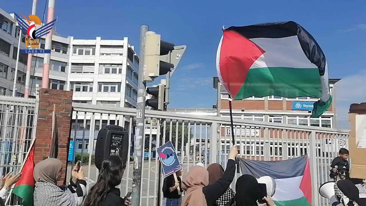 نظم اتحاد الطلاب في جامعة كيل الألمانية الخميس، بمشاركة الجالية اليمنية الفاعلة في ألمانيا، وقفة احتجاجية دعما لغزة أمام شركة "ثوسنكروب مارينا" في مدينة كيل شمال البلاد.