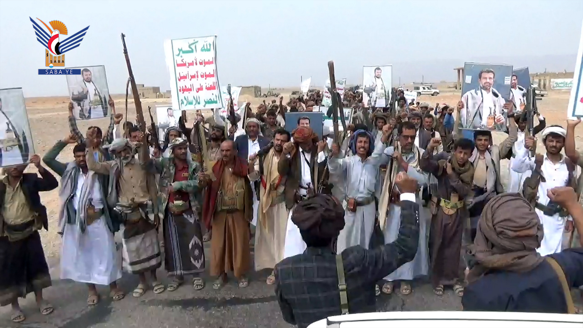 كما شهدت ساحة مجزر بالمربع الشمالي مسيرة حاشدة، بارك المشاركون فيها العمليات النوعية للقوات المسلحة اليمنية والعمليات المتصاعدة لجبهات الإسناد في لبنان والعراق.