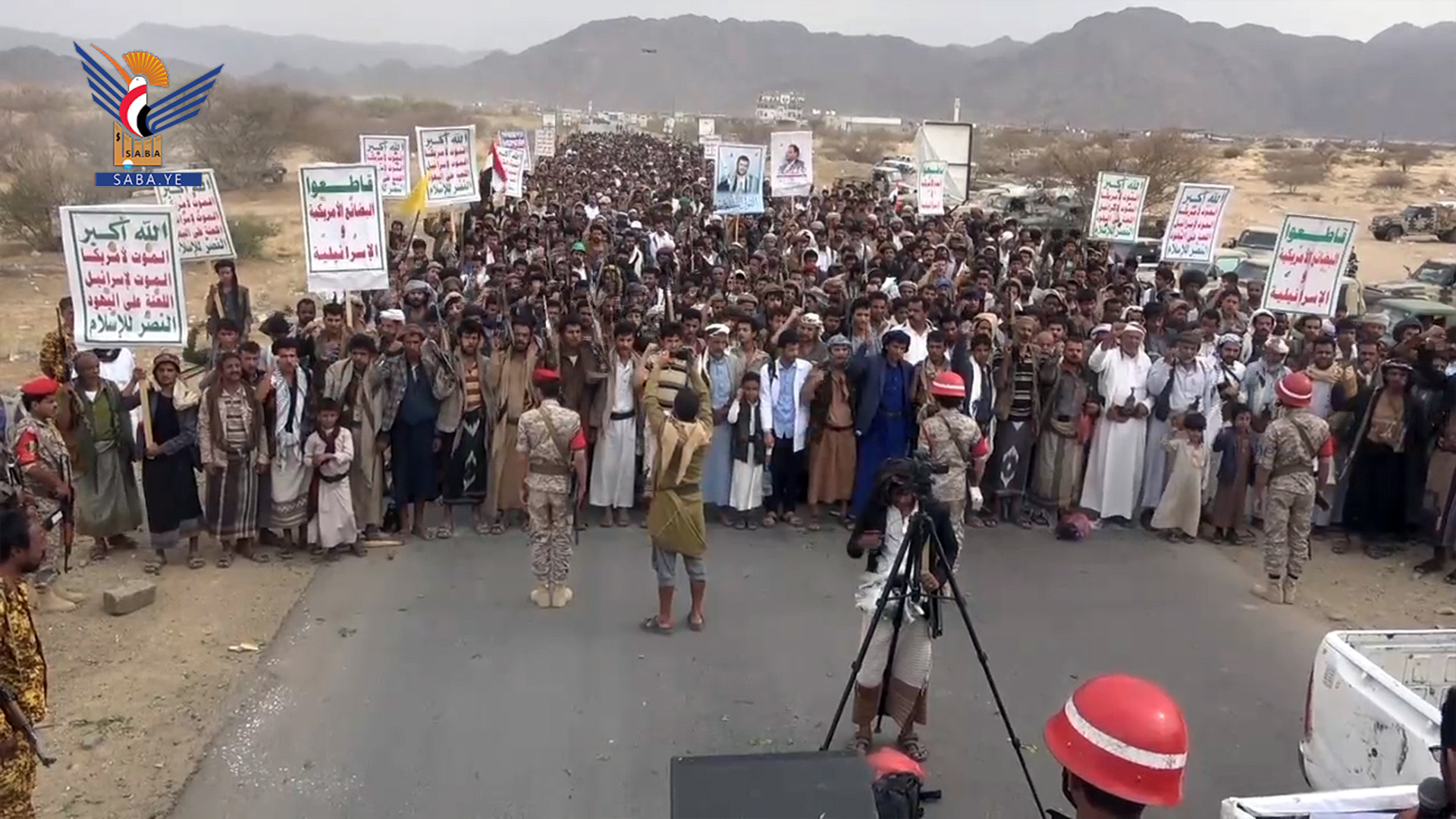 حيث شهدت ساحة الجوبة، مسيرة حاشدة لأبناء مديريات المربع الجنوبي رفع المشاركون فيها شعارات منددة باستمرار جريمة القرن التي يرتكبها العدو الصهيوني في قطاع غزة في عدوان وحشي لامثيل له بدعم أمريكي وأوربي.
