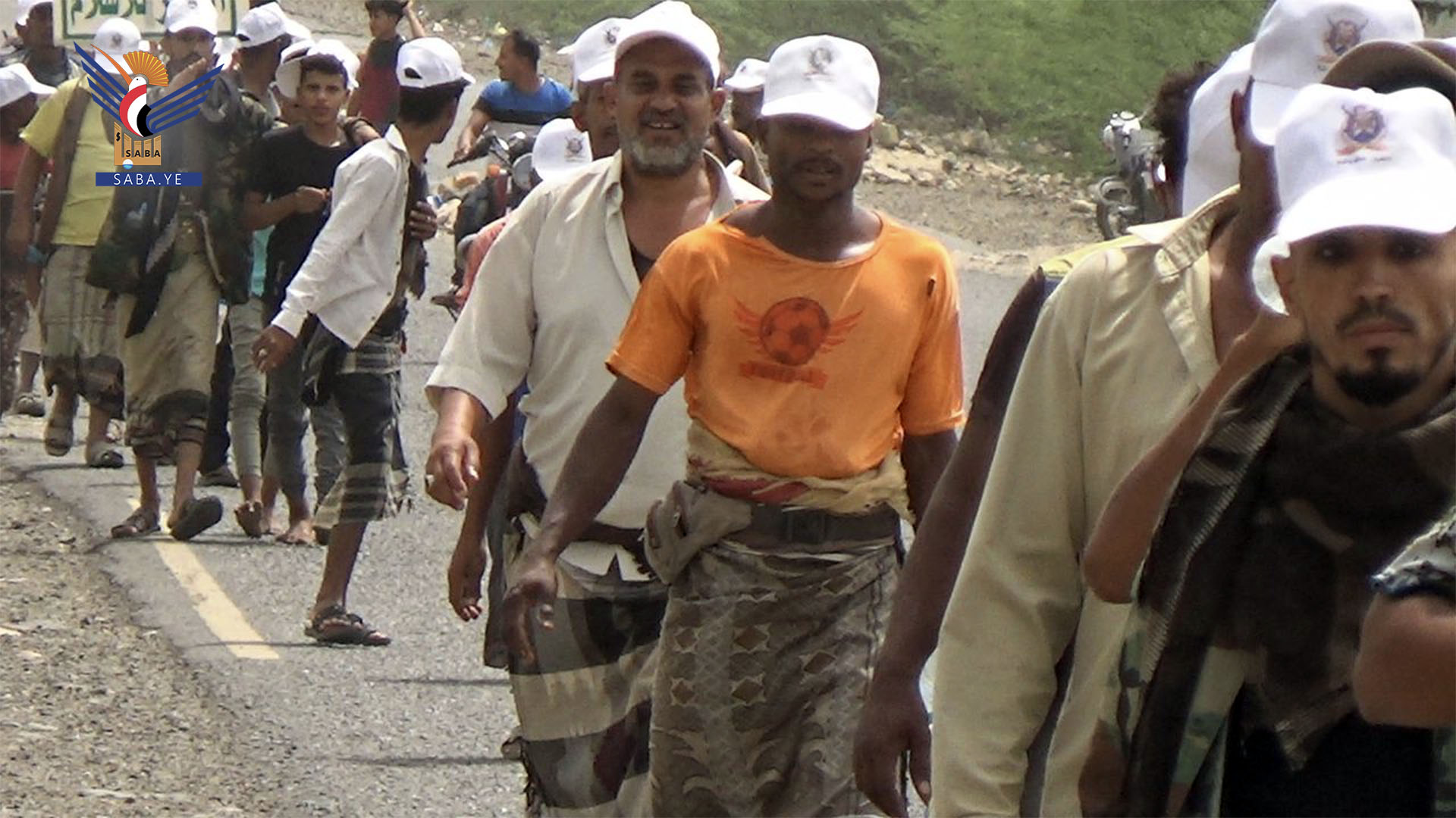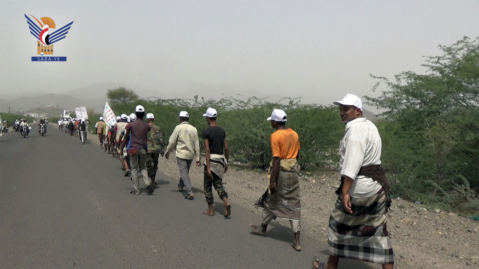 وانطلق المسير الذي يأتي ضمن معركة "الفتح الموعود والجهاد المقدس" من منطقة الشريجة وصولا إلى مفرق عزلة الهجر بمديرية القبيطة.