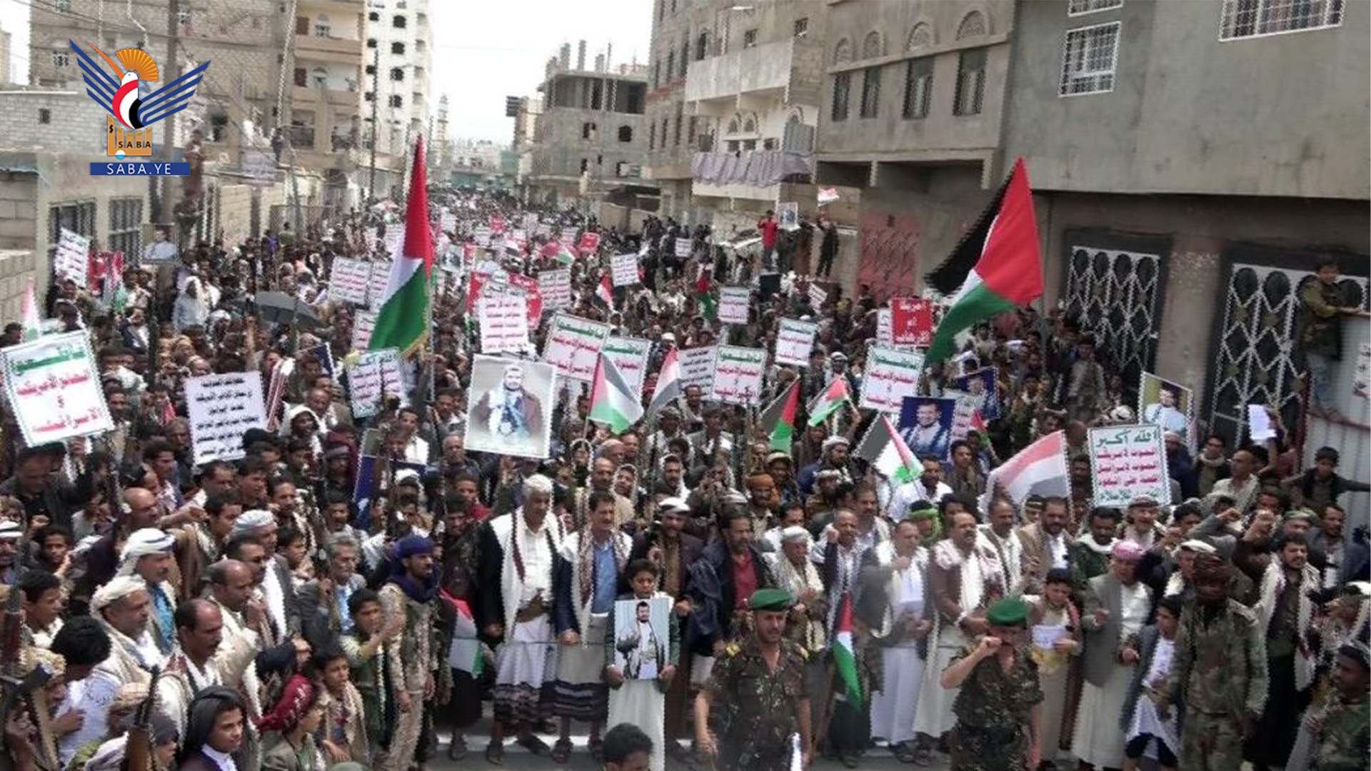 مسيرات ووقفات بالبيضاء تحت شعار "ثابتون مع غزة وسنتصدى لأمريكا ومن تورط معها"