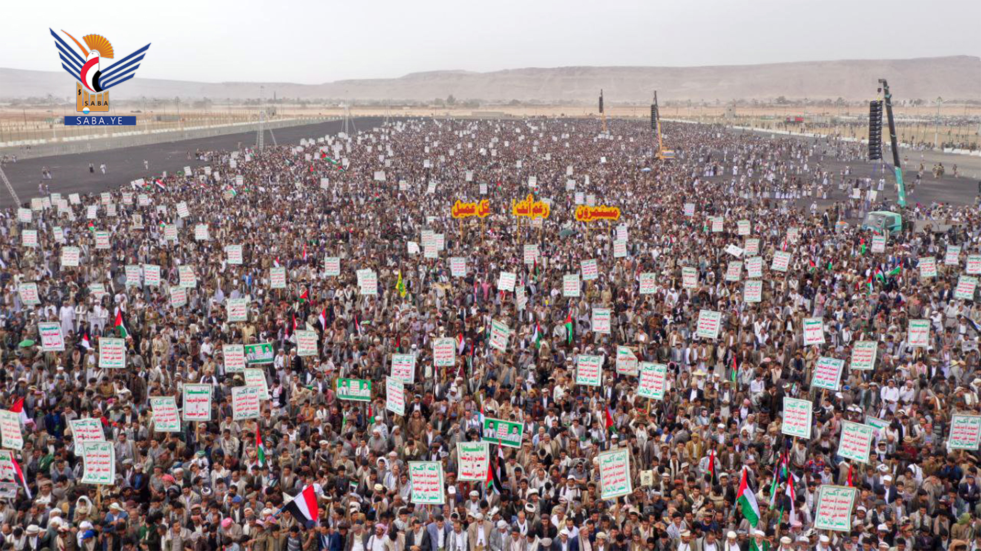 وجدّد بيان المسيرات العهد لقائد الثورة بعدم تراجع اليمن عن موقفه ولن يخذل الشعب الفلسطيني ولن يتفرج على معاناته وسيبقى موقفناً مستمراً ومتصاعداً.