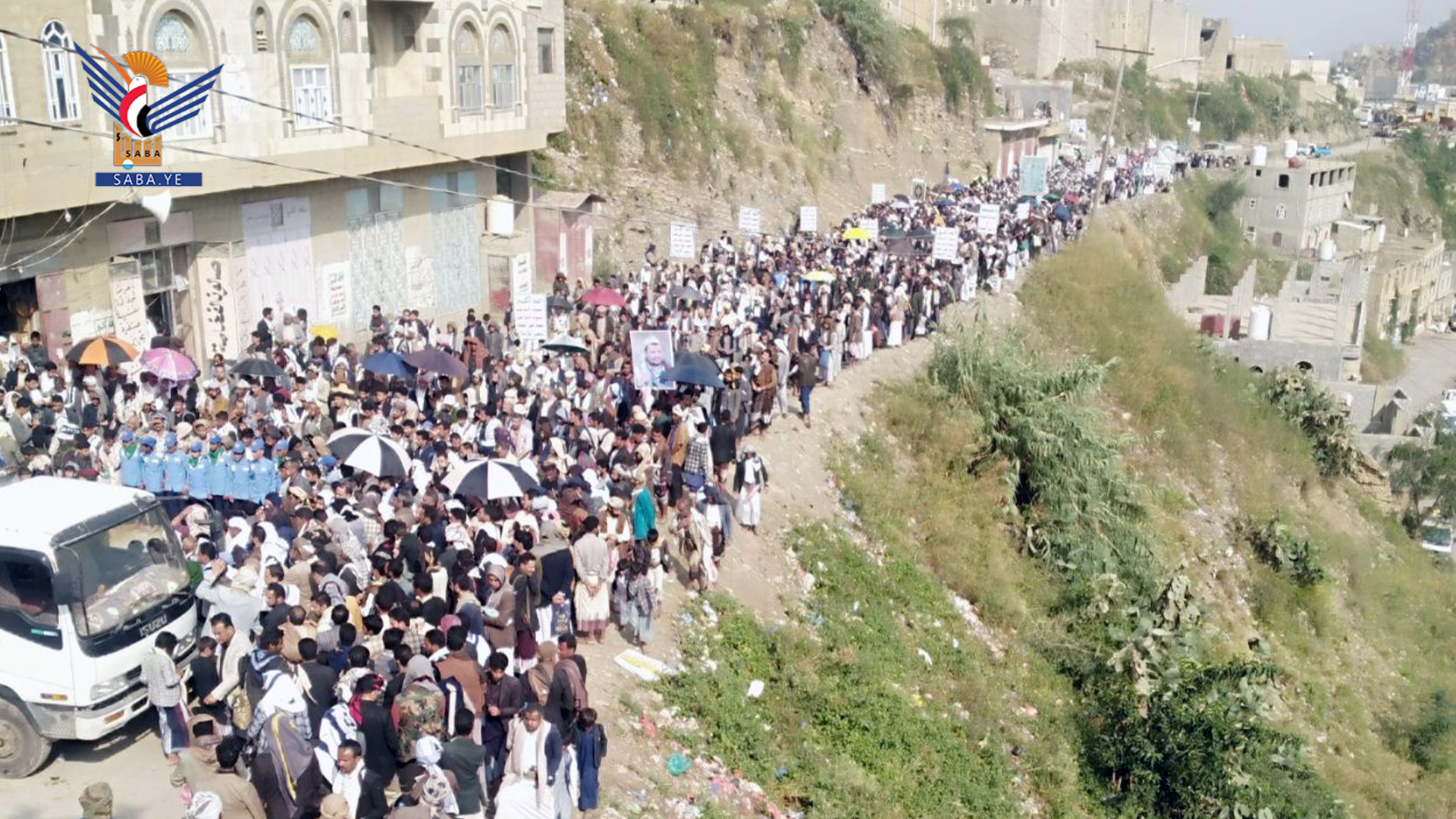 حجة.. حشود غير مسبوقة بمسيرات "ثابتون مع غزة.. وسنتصدى لأمريكا ومن تورط معها"