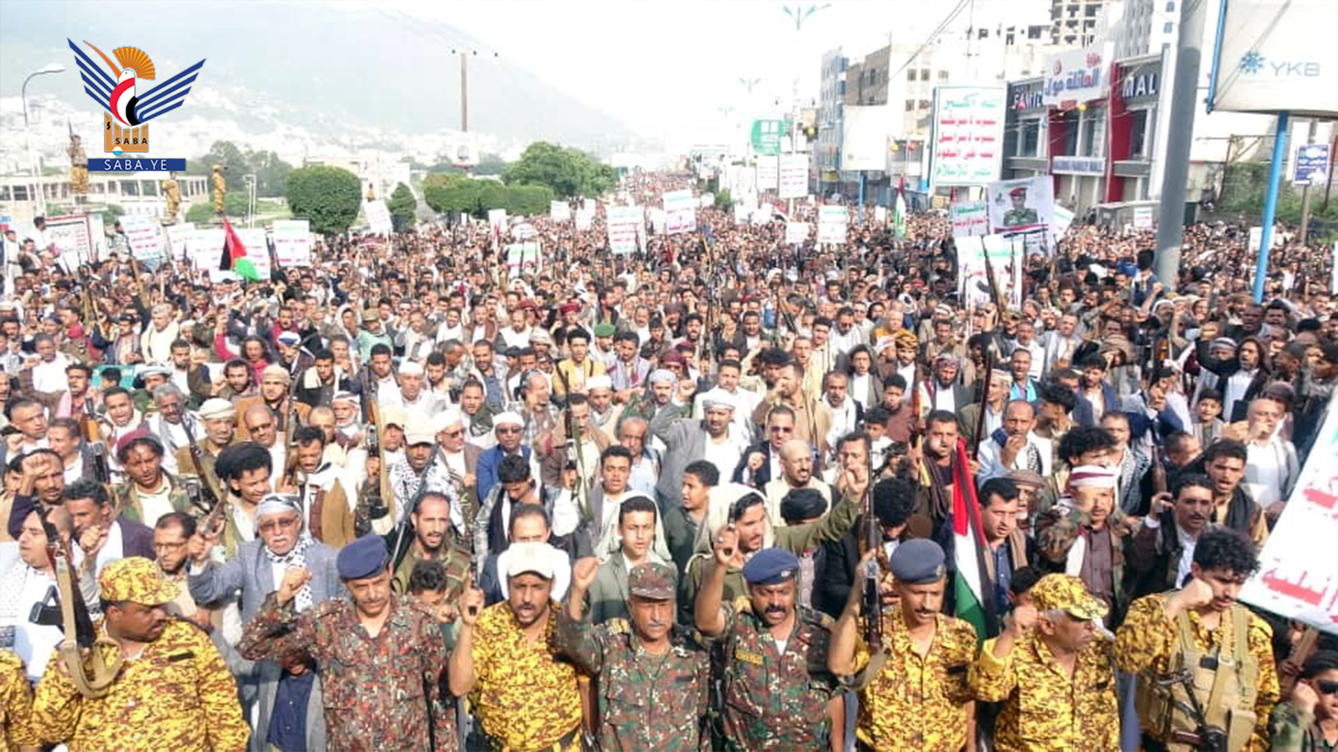 ونددت الحشود في المسيرة المركزية بمدينة إب، بمشاركة المحافظ عبدالواحد صلاح، ومسؤول التعبئة عبدالفتاح غلاب، وعدد من أعضاء مجلسي النواب والشورى ووكلاء المحافظة وقيادات تنفيذية ومحلية، بالعدوان الصهيوني على قطاع غزة والأراضي المحتلة.