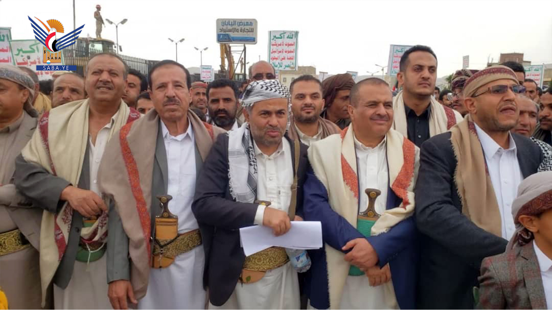 حيث شهدت عاصمة المحافظة، في ساحة الرئيس الشهيد صالح الصماد، خروج مسيرة جماهيرية كبرى وطوفانا بشريا لم تتسع له الساحة، حيث توافد المشاركون من مديريتي عمران وعيال سريح وعزلة الأشمور وعزلتي عيال حاتم وبني قطيل في مديرية جبل يزيد.