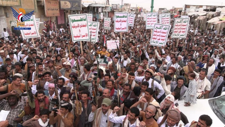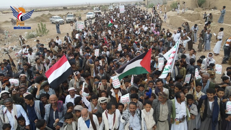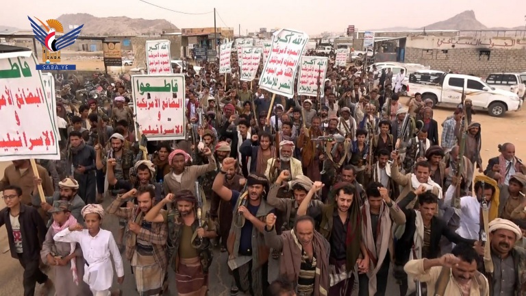 الجوف.. عشرون مسيرة بعنوان "ثابتون مع غزة.. وسنتصدى لأمريكا ومن تورط معها"