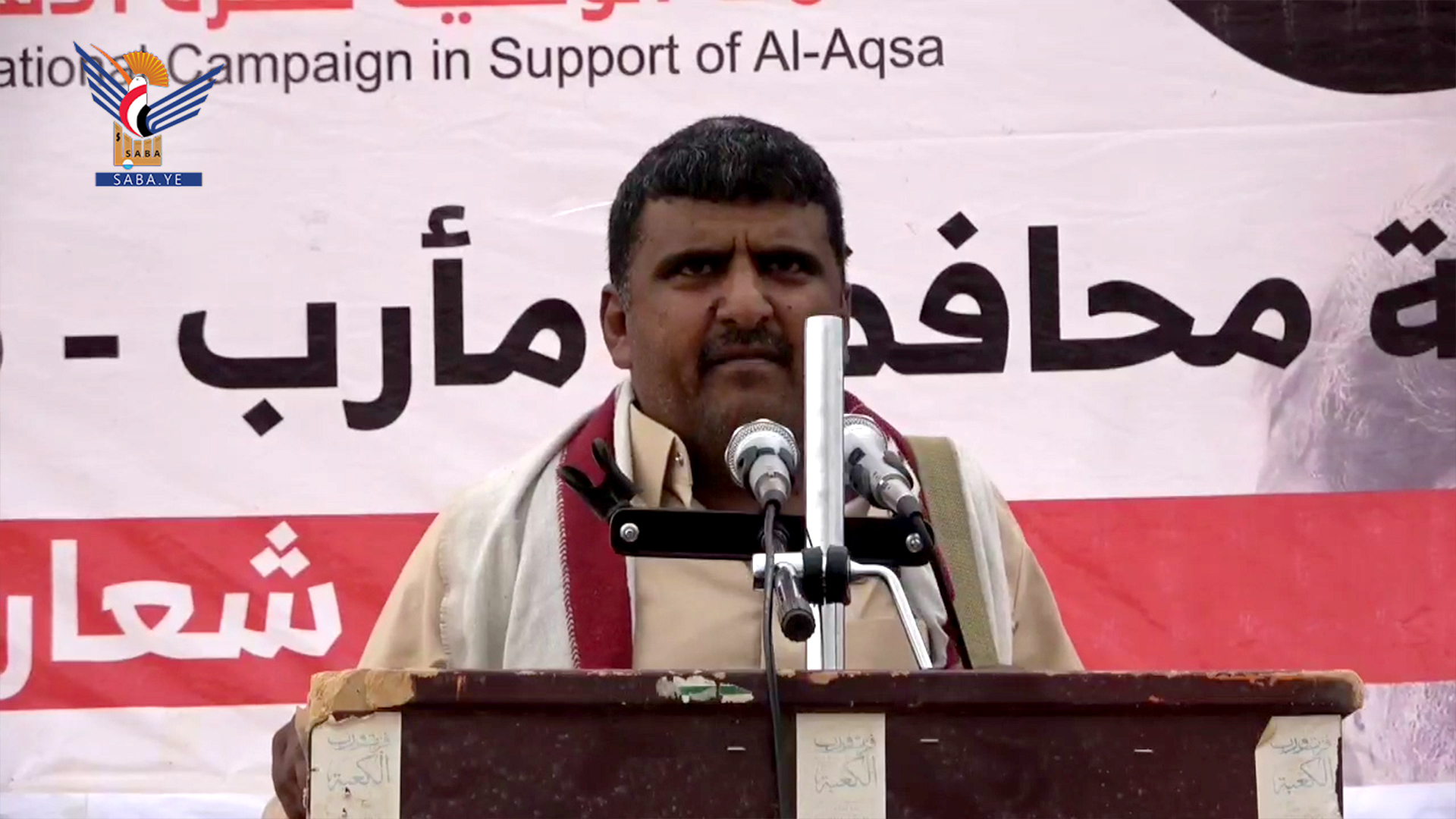 وخرج أبناء مديرية ماهلية في مسيرتين بمنطقتي قانية والعمود.. مشيرين إلى أن تنفيذ النظام السعودي التوجيهات الأمريكية خدمة للصهاينة لن يثني الشعب اليمني عن موقفه المساند للشعب الفلسطيني.