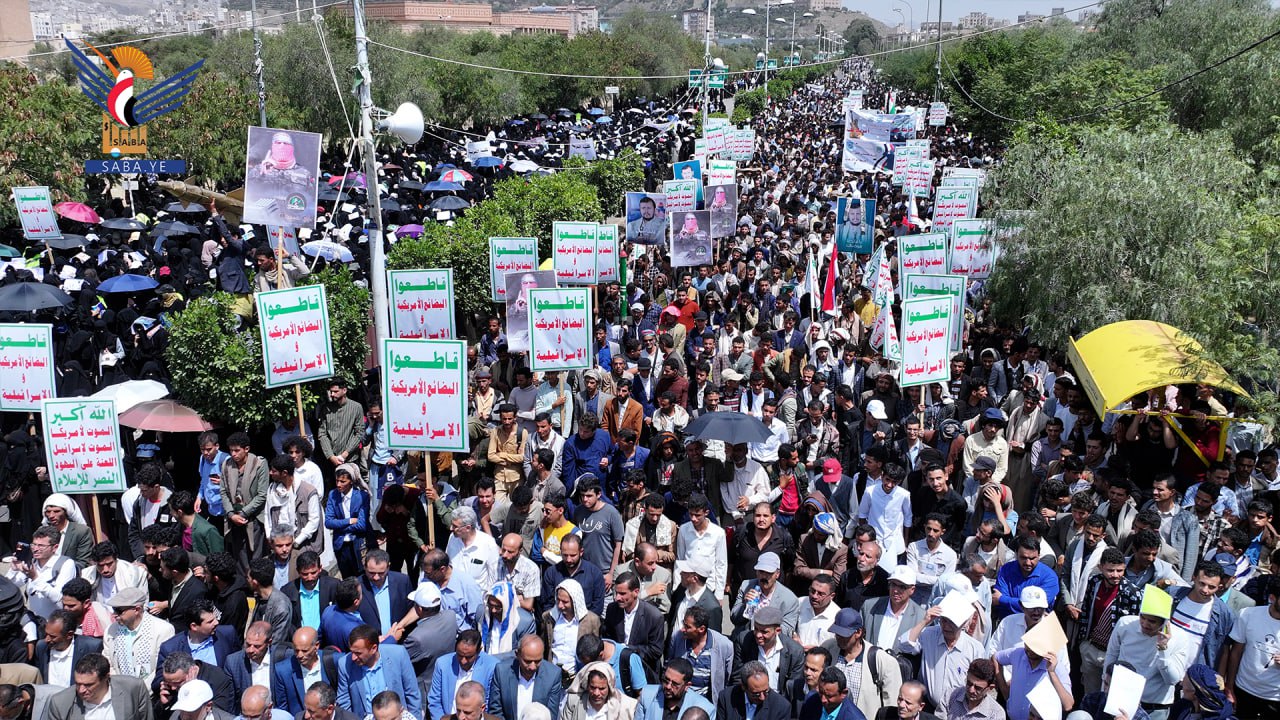 وردد المشاركون في المسيرة التي تقدمها رئيس جامعة صنعاء الدكتور القاسم عباس ونواب رئيس الجامعة وعمداء الكليات ومنتسبو الجامعة من أكاديميين وإداريين وطلاب وطالبات، شعارات الحرية والبراءة من أعداء الأمة، والمناهضة للغطرسة الأمريكية والصهيونية، والمعبرة عن التضامن مع الشعب الفلسطيني ومقاومته الباسلة.