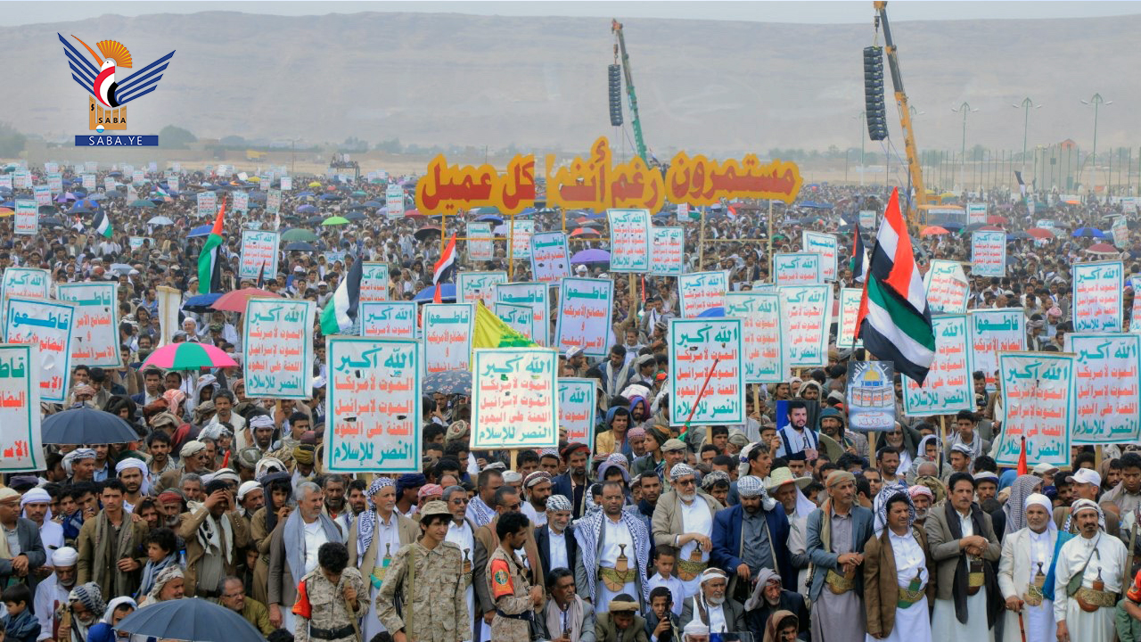 وفي المسيرات الكبرى التي شهدتها ساحات المولد النبوي الشريف بمركز المحافظة والشهيد القائد بخولان عامر، ومديريات غمر وقطابر وآل سالم ومنبه وشداء وكتاف والحشوة، وعرو وجمعة بني بحر، والعين والقهرة في الظاهر، وشعار والحجلة وبني صياح في رازح، وربوع الحدود ومدينة جاوي وبني عباد في مجز، وذويب بحيدان وحنبة وآل ثابت بمديرية قطابر، أكد المشاركون الثبات على الموقف المساند للشعب الفلسطيني ومقاومته الباسلة رغم أنف كل عميل.