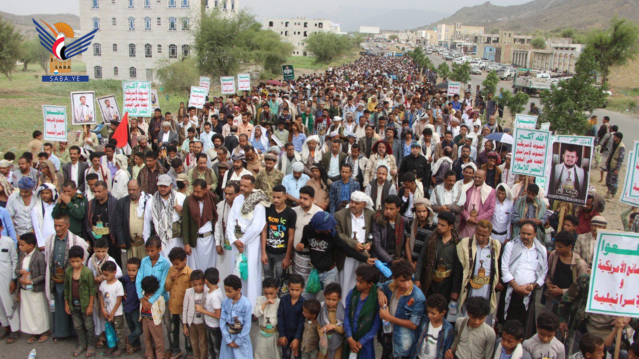 وخرجت مسيرات بساحتي مركز مديرية شرعب السلام - والمربع الشمالي جسر نخلة وساحة مركز مديرية شرعب الرونة والاثاور في مربع الخزجة بمديرية حيفان.