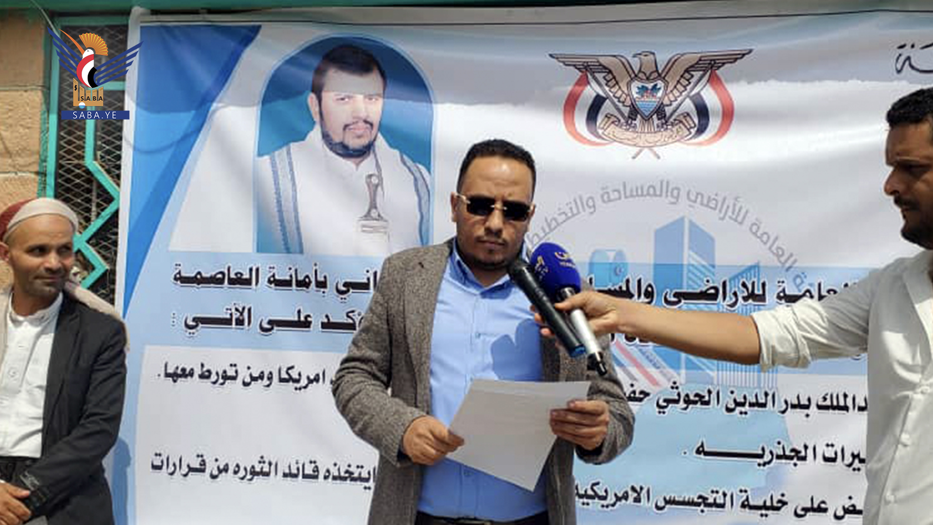 نظمت قيادة وموظفو فرع الهيئة العامة للأراضي والمساحة والتخطيط العمراني في أمانة العاصمة اليوم، وقفة تأييدا وتفويضاً لقائد الثورة، ومباركةً للإنجاز الأمني بالقبض على خلية التجسس الأمريكية والصهيونية.