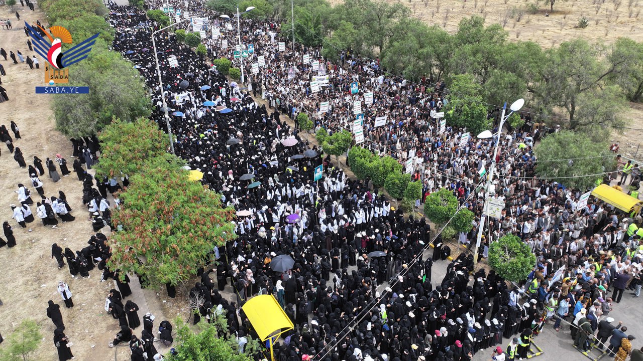 "ثابتون مع غزة رغم أنف كل عميل" مسيرة لجامعة صنعاء تضامنًا مع فلسطين