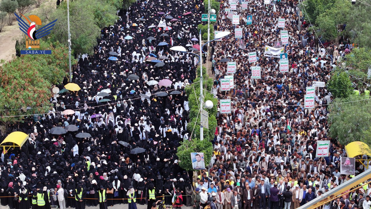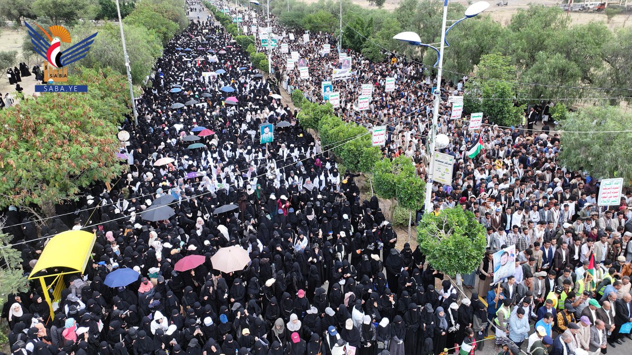 وأكد المشاركون الموقف الثابت والمبدئي للشعب اليمني في مناصرة ومساندة الشعب الفلسطيني ومقاومته الباسلة في قطاع غزة والضفة الغربية والاستمرار في العمليات العسكرية المتصاعدة ضد العدو الأمريكي والصهيوني .
