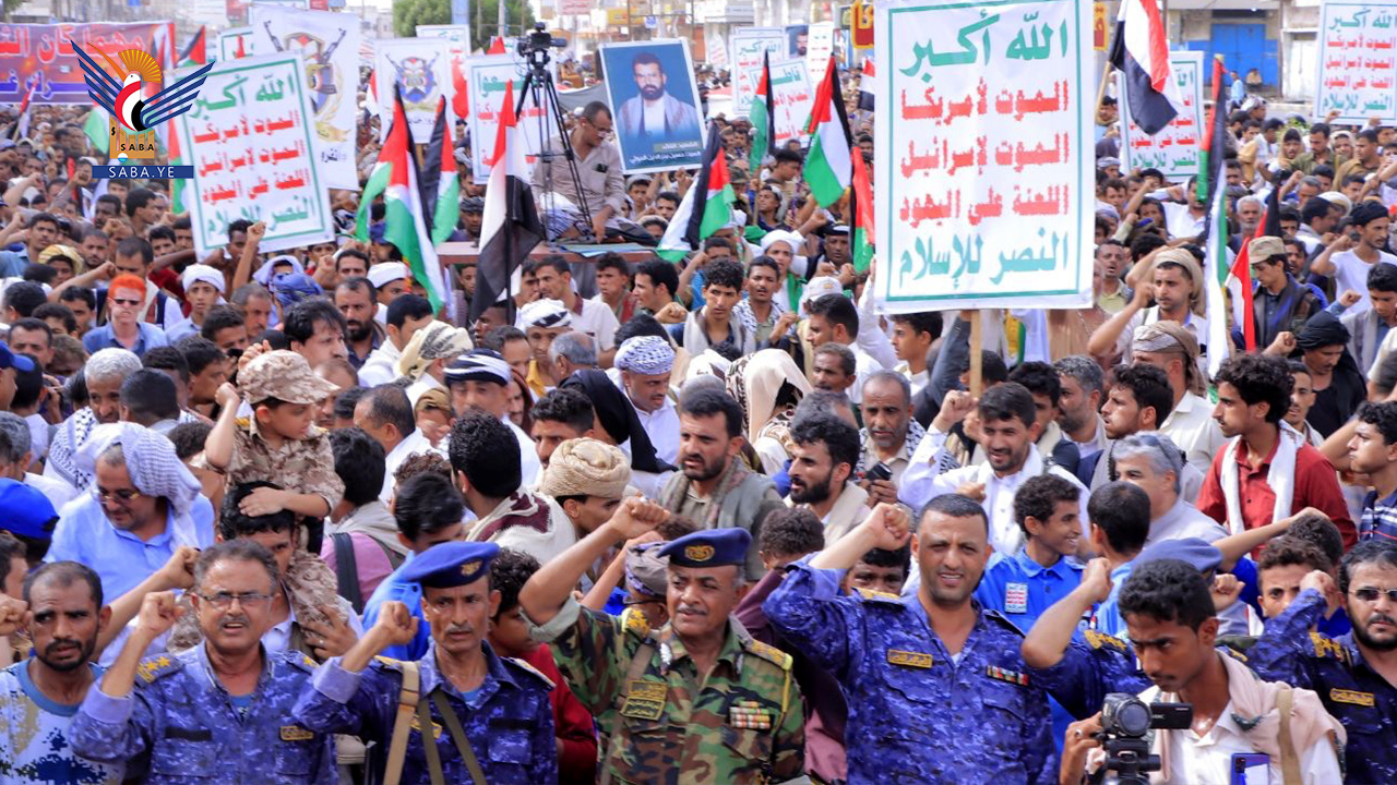 ورفع المشاركون في المسيرات التي تقدمها المحافظ محمد قحيم وأعضاء من مجلسي النواب والشورى ووكيل أول المحافظة أحمد البشري ووكلاء المحافظة، العلمين اليمني والفلسطيني ورددوا الشعارات المناهضة للغطرسة الأمريكية والصهيونية، والمعبرة عن التضامن مع الشعب الفلسطيني ومقاومته الباسلة.