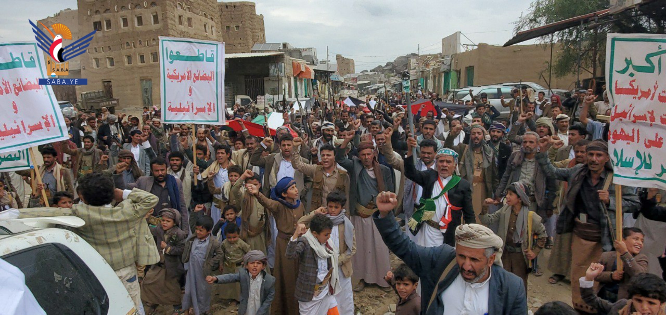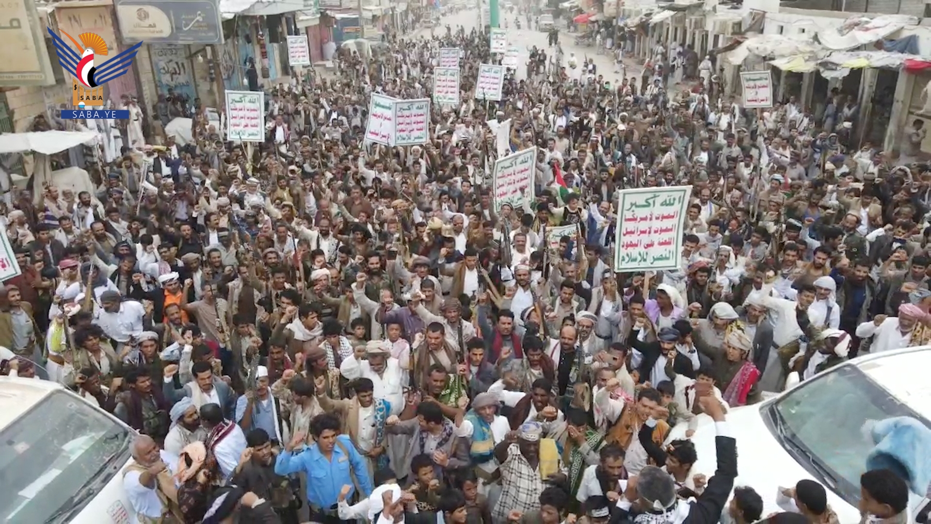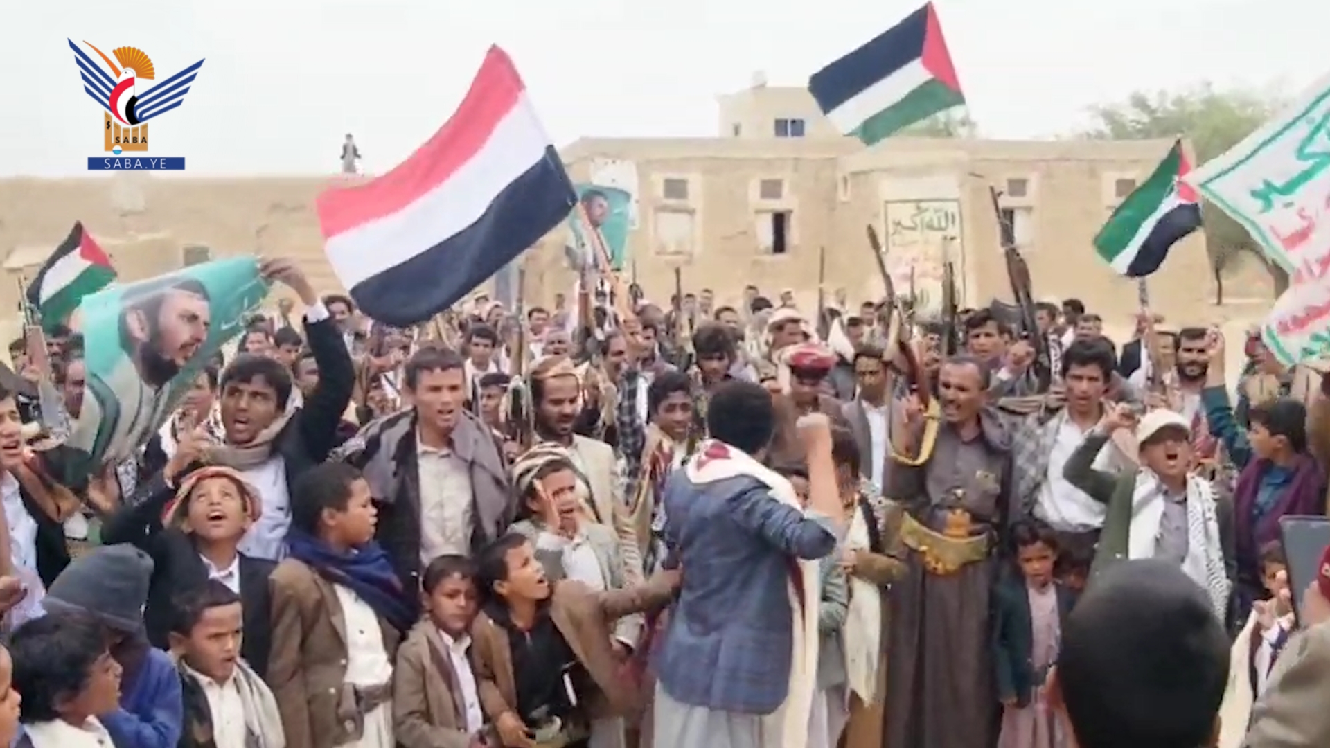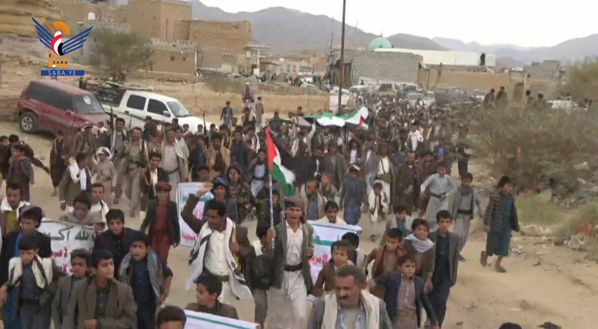 وندد المشاركون في المسيرات في مديريات الحزم والمتون والمطمة والغيل والخلق والزاهر وخب الشعف والعنان والمراشي، ورجوزة والحميدات والمصلوب، باستمرار الجرائم التي يرتكبها العدو الصهيوني، وتأكيدًا على الموقف اليمني الثابت المناصر للشعب الفلسطيني.