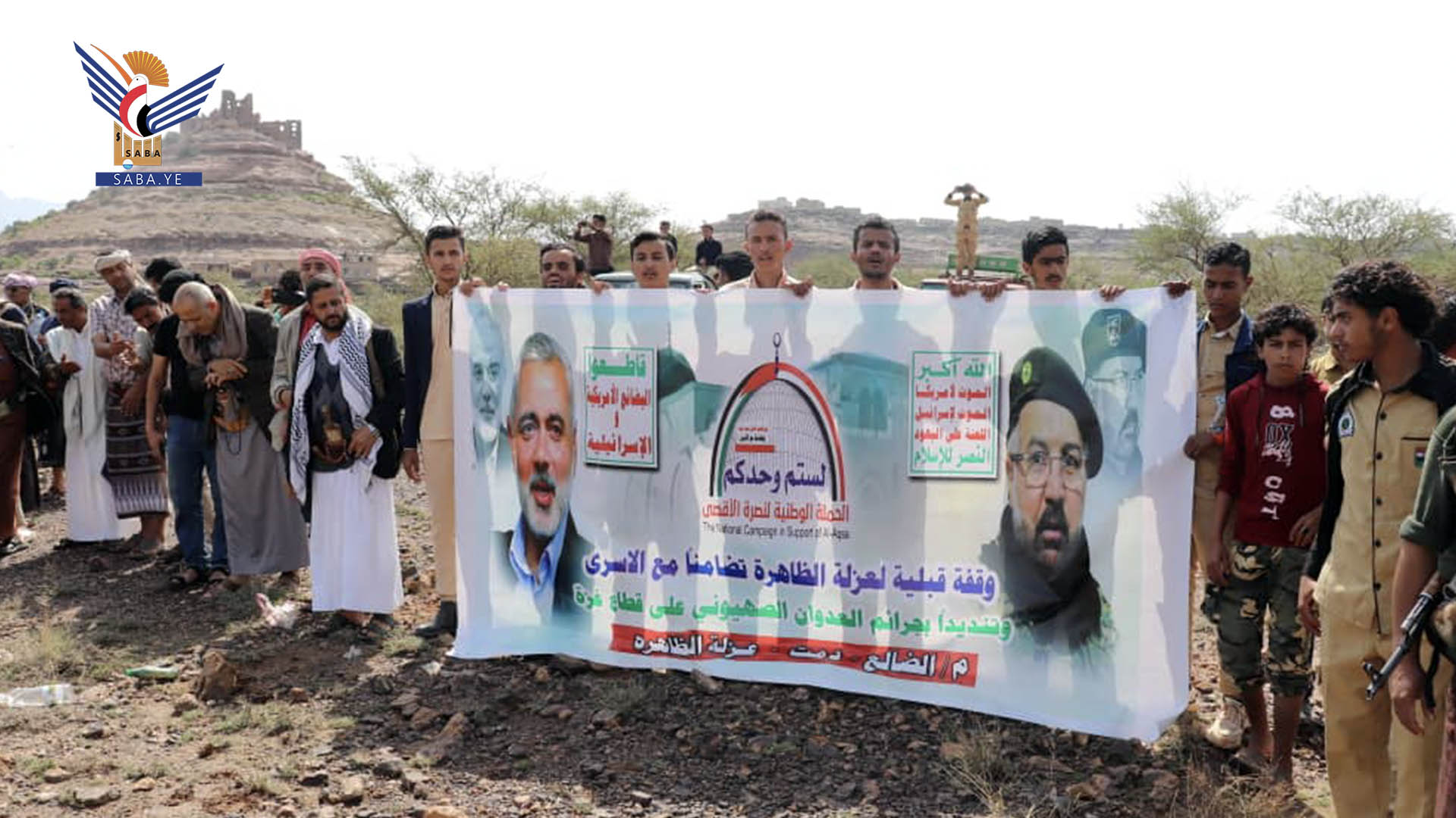 نظم أبناء عزلة الظاهرة بمديرية دمت في محافظة الضالع اليوم، وقفة تضامنا مع الأسرى الفلسطينيين وتنديدا بجريمتي اغتيال رئيس المكتب السياسي لحركة المقاومة الإسلامية حماس إسماعيل هنية، والقيادي في حزب الله فؤاد شكر من قبل الكيان الصهيوني.