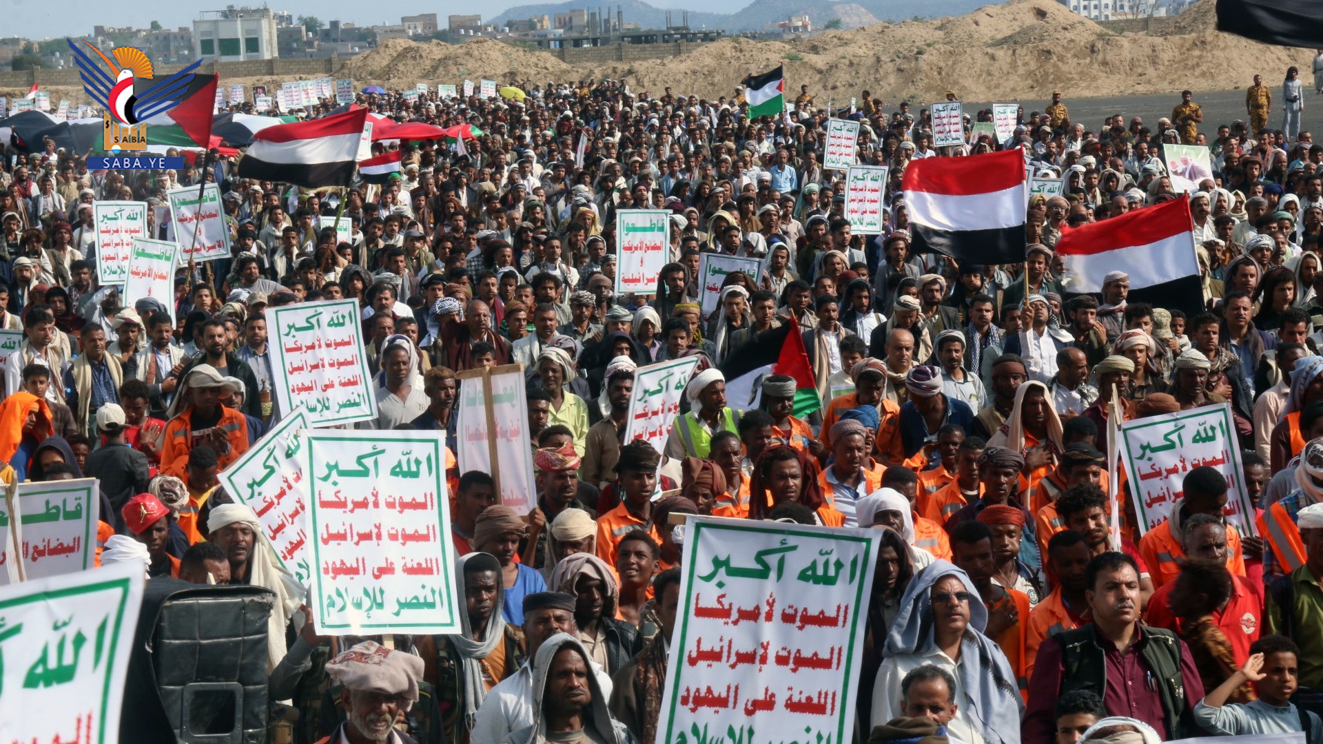 وردد المشاركون في المسيرات، بحضور عدد من أعضاء مجلس الشوري ووكلاء المحافظة وقيادات محلية وتنفيذية وعسكرية وأمنية ومشايخ ووجهاء وشخصيات اجتماعية، هتافات منددة باستمرار العدو الصهيوني، المدعوم أمريكياً وبريطانياً في ارتكاب المجازر وحرب الإبادة بحق الشعب الفلسطيني في قطاع غزة.