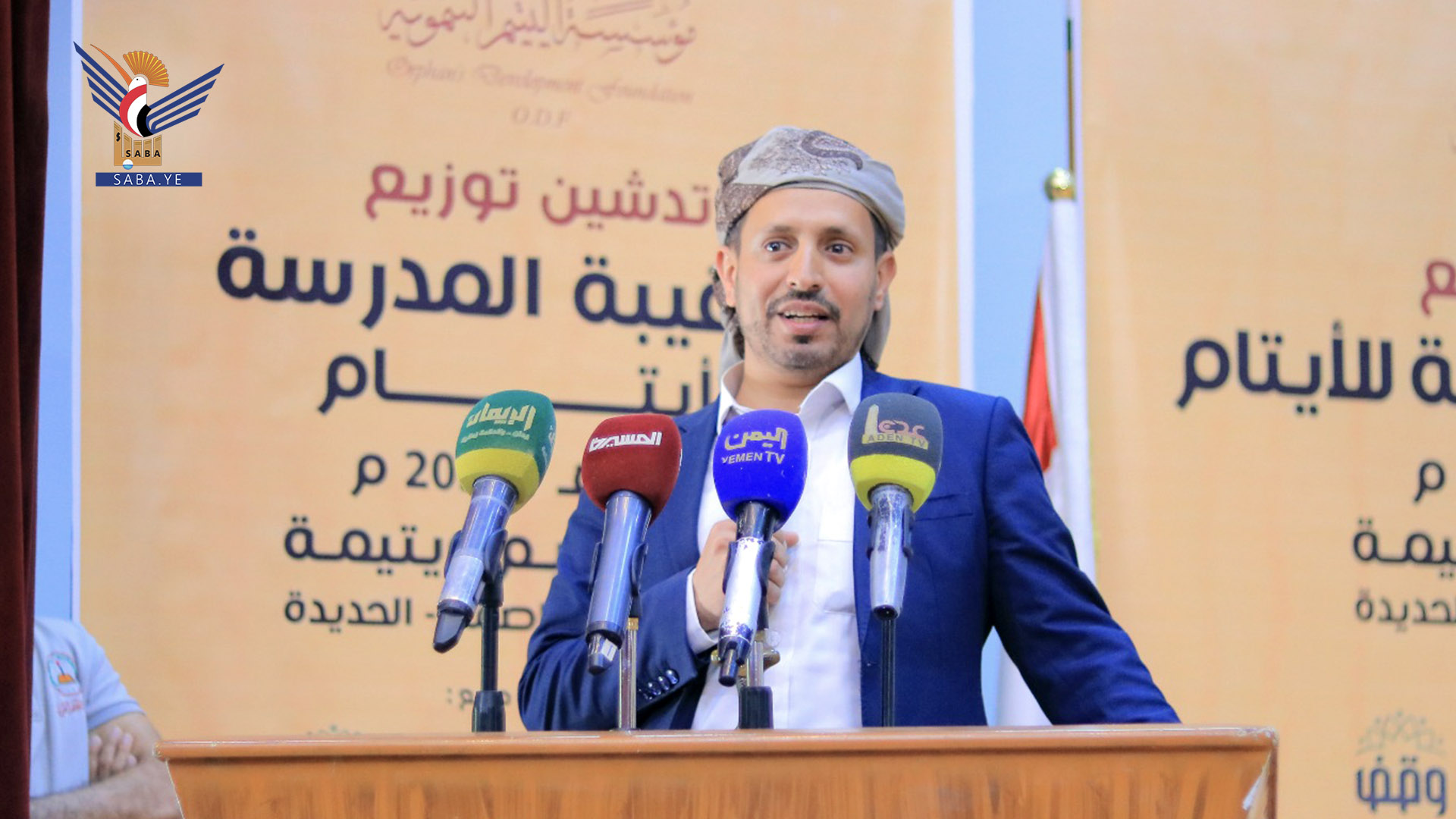وأشار إلى مكانة ومنزلة الأيتام عند الله تعالى وفضائل كافل الأيتام وأهمية توفير الحماية و الرعاية النفسية والمعنوية والمالية والتعليمية والصحية لهذه الشريحة الهامة وتعويضهم عن اليتم والحرمان الذي افتقدوه في حياتهم .