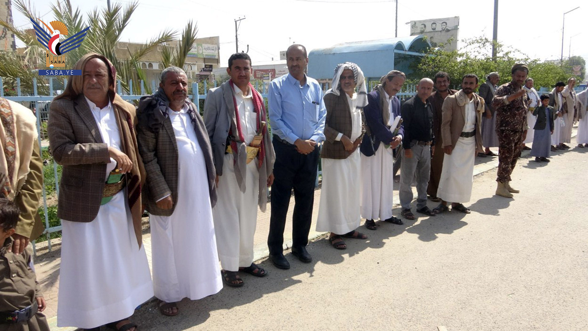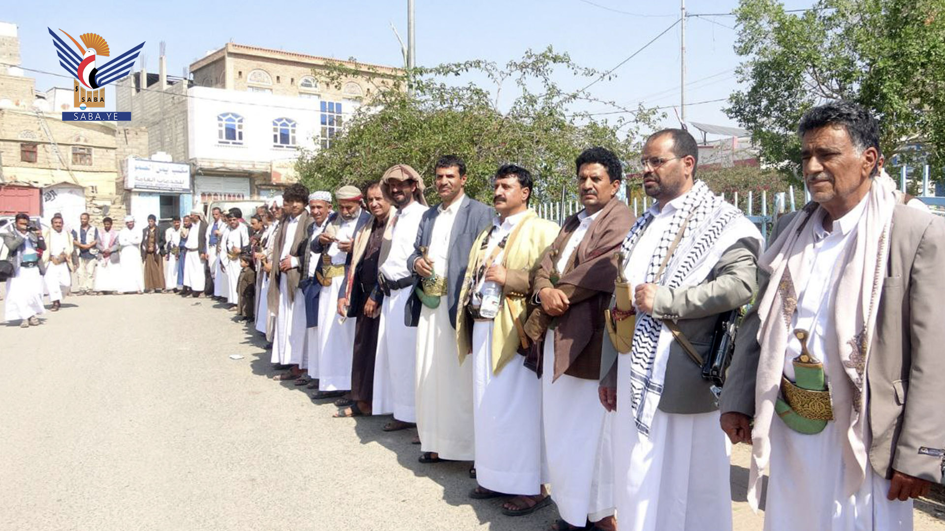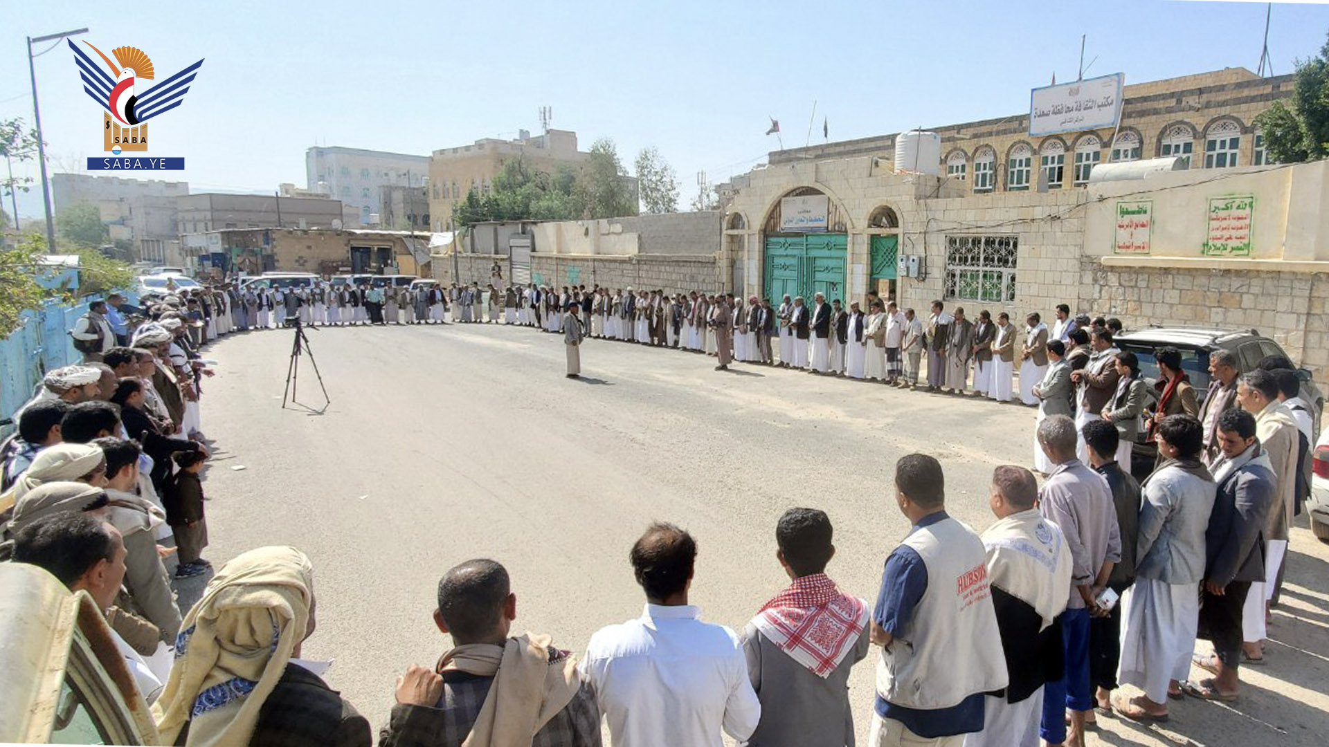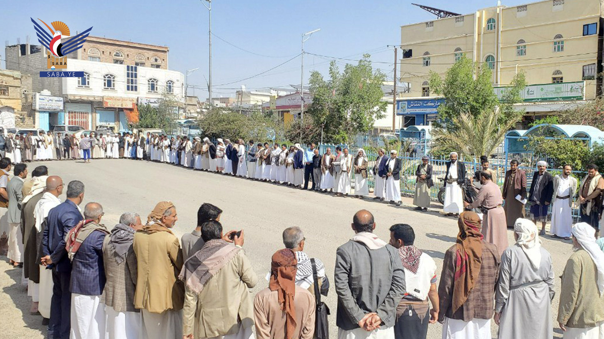 وقفة للسلطة المحلية بصعدة للتنديد بجريمة العدو الصهيوني بحق النازحين بغزة
