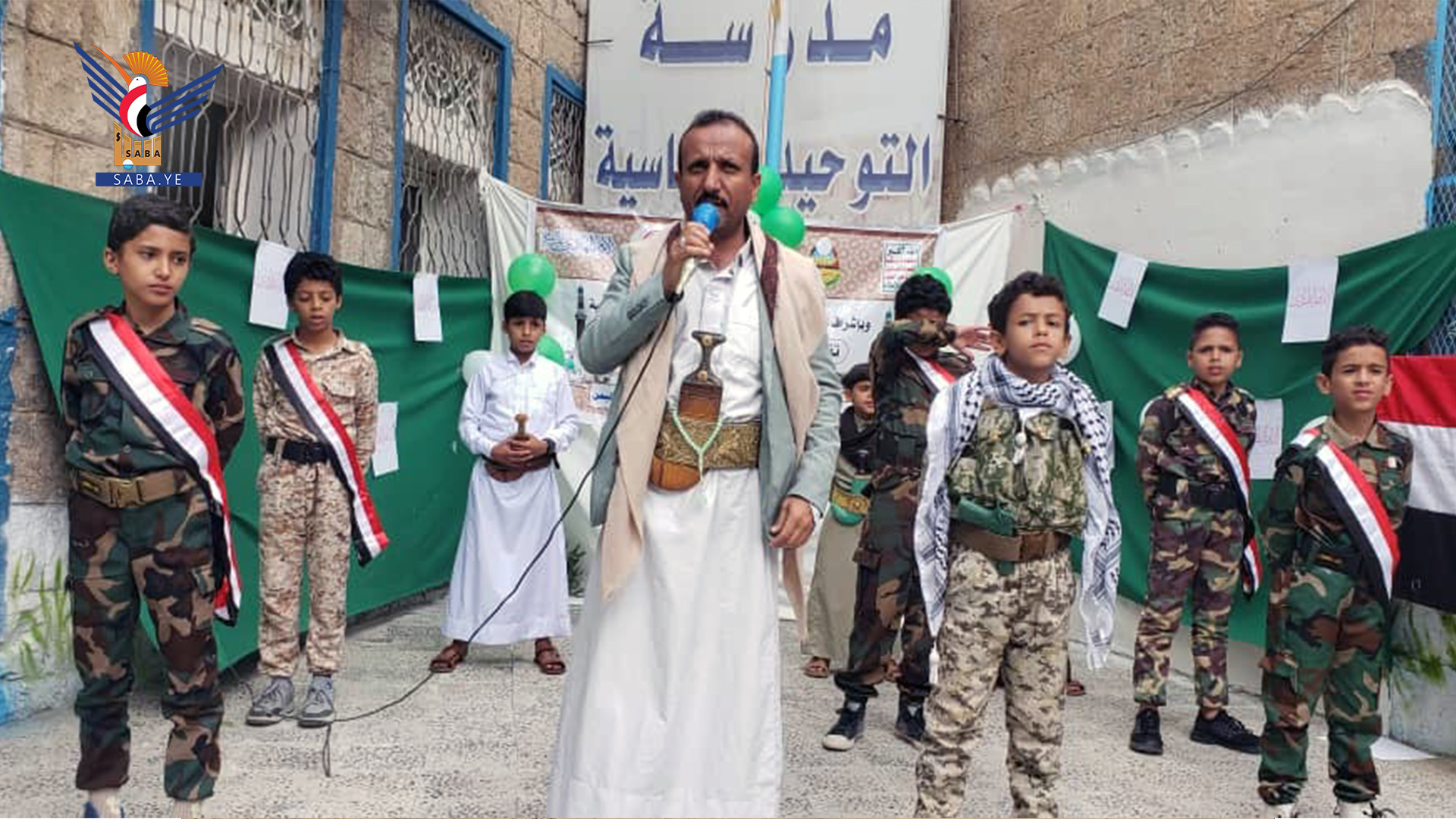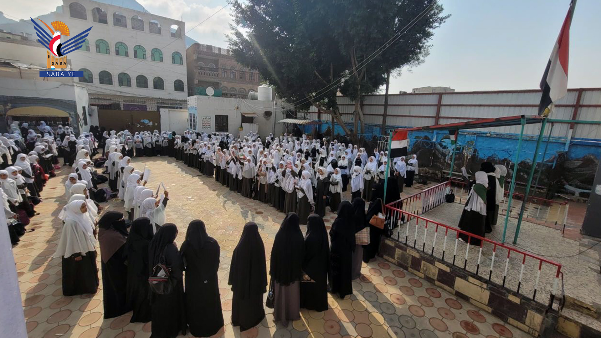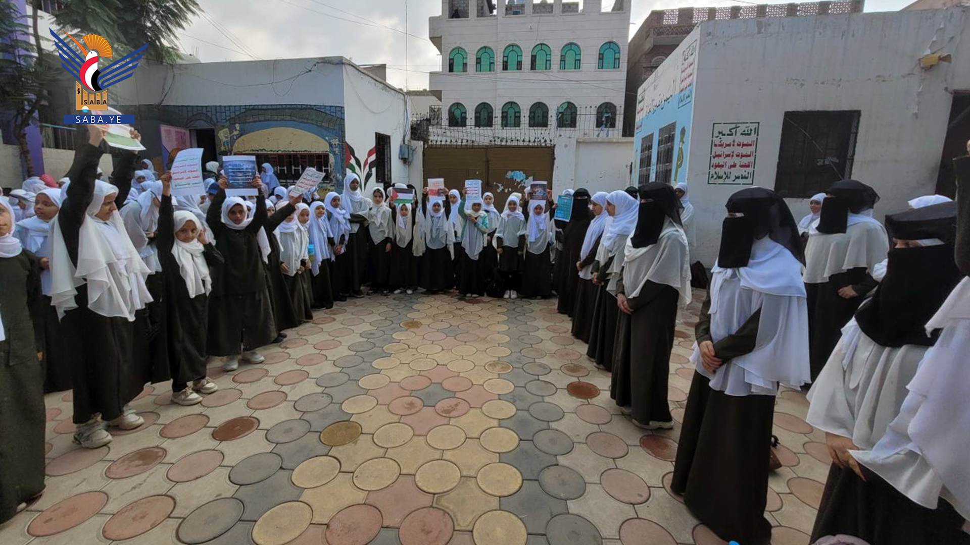 نظم طلاب وطالبات المدارس الحكومية والأهلية بمديريات أمانة العاصمة اليوم، وقفات تنديداً باستمرار جرائم الإبادة التي يرتكبها العدو الصهيوني ضد المدنيين في قطاع غزة.