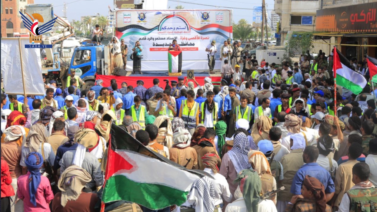 الحديدة تشهد 38 ساحة في مسيرات "نصرة للأقصى وغزة.. الإسناد مستمر والرد قادم"