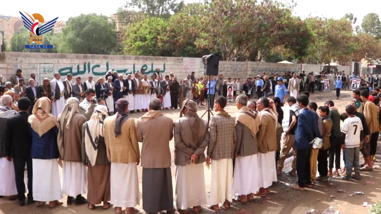 فيما أكدت كلمة أبناء الشهداء التربويين التي ألقاها حسان الجمل، أن صمود الكادر التربوي أفشل مخططات العدوان الأمريكي السعودي الرامية لتجهيل الشعب اليمني.