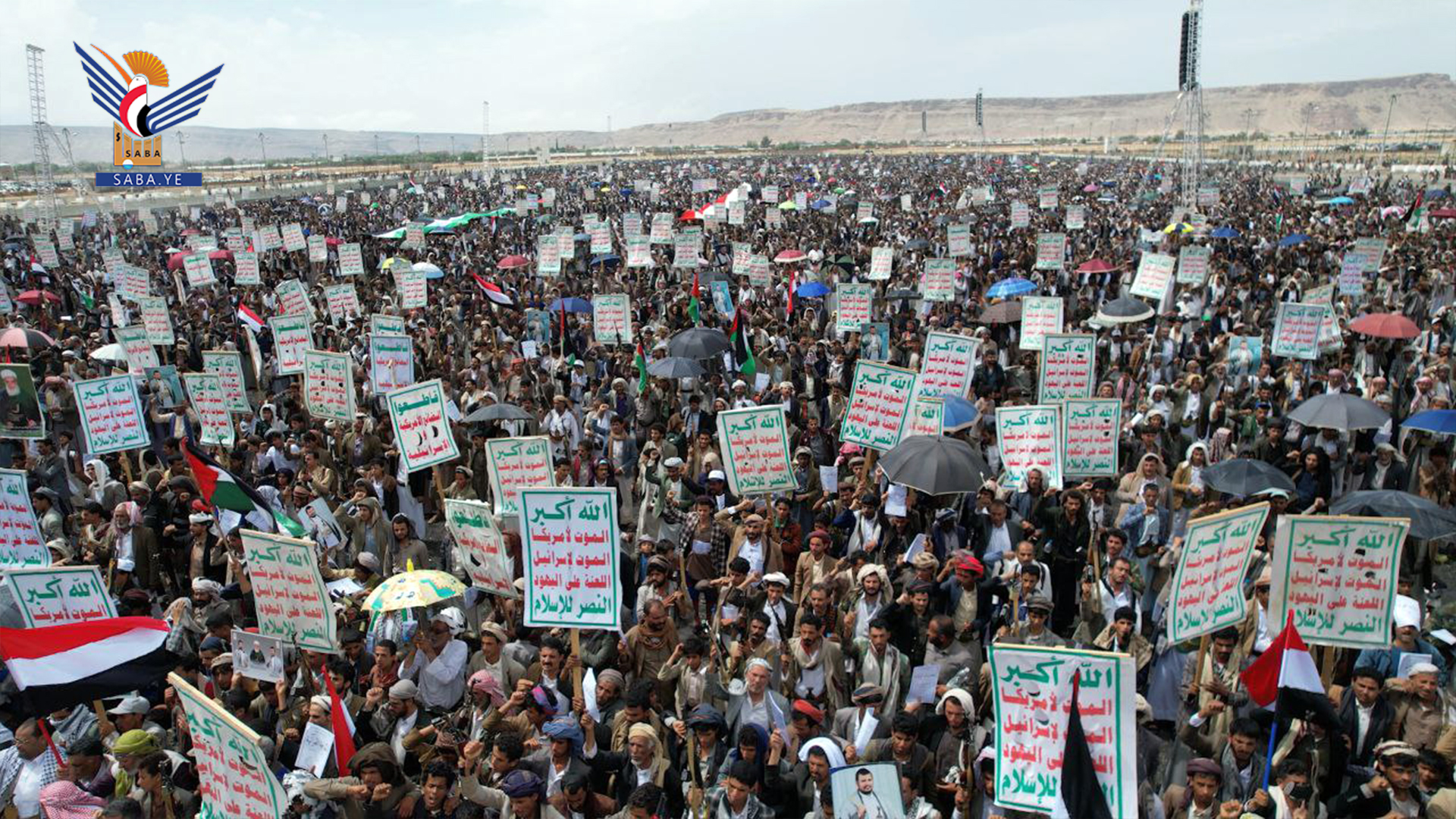 وفي المسيرات الكبرى التي شهدتها ساحة المولد النبوي الشريف بمركز المحافظة وساحة الشهيد القائد بخولان عامر ،ومديريات غمر وقطابر وآل سالم ومنبه وشداء وكتاف والحشوةوباقم ، وساحتي عرو وجمعة بني بحر ، والعين والقهرة في الظاهر ، وشعار والحجلة وبني صياح في رازح ، وربوع الحدود ومدينة جاوي وبني عباد في مجز ، وفي ذويب بحيدان وفي حنبة وآل ثابت بمديرية قطابر ، أكد المشاركون الاستمرار في إسناد غزة حتى النصر .