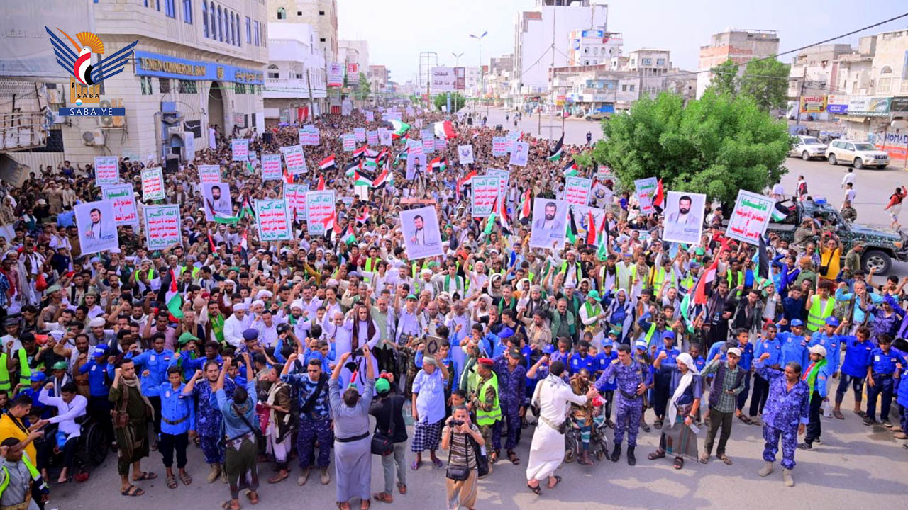 الحديدة: حشود مليونية في 57 ساحة بمسيرات "نُصرتنا لغزة والأقصى..مسئولية وجهاد"