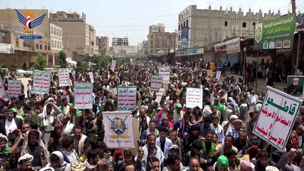 وجدّد بيان صادر عن المسيرات، التأكيد على الموقف الثابت والمبدئي للشعب اليمني المساند للشعب الفلسطيني، معلناً البراءة من المتخاذلين والساكتين والمتآمرين.