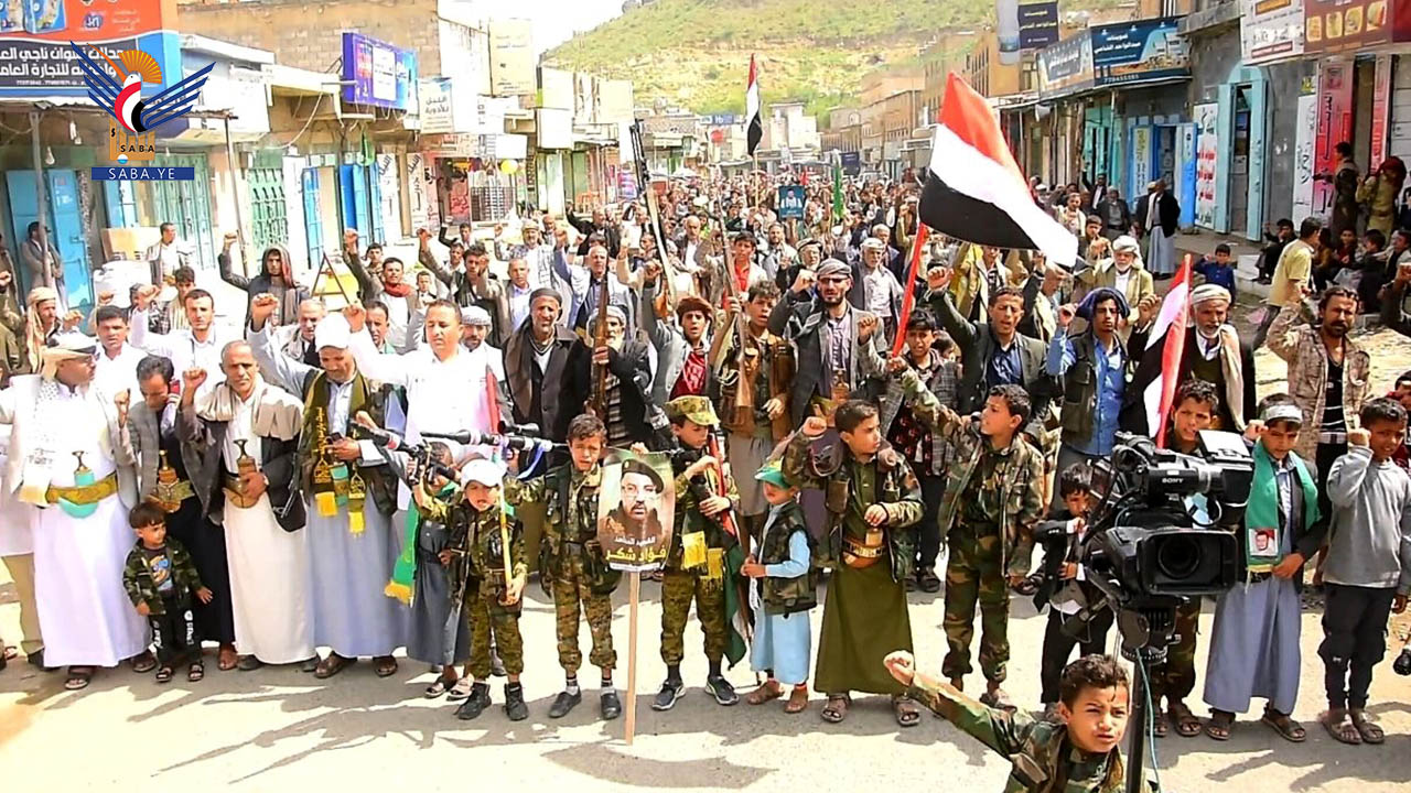 إلى ذلك شهدت مديريات المربع الشمالي "يريم، السدة، النادرة، والرضمة" ست مسيرات حاشدة، جدّد فيها المشاركون التأكيد على الدعم الكامل ومساندة الشعب الفلسطيني في مواجهة الكيان الصهيوني ودفاعًا عن المسجد الأقصى والمقدسات.