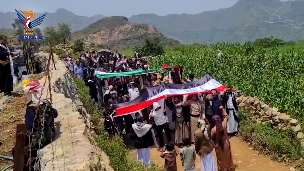 ورفع المشاركون في المسيرات التي حضرها وكلاء المحافظة ومسؤولي التعبئة وقيادات محلية وتنفيذية، العلمين اليمني والفلسطيني ورددوا الشعارات المنددة بجرائم الكيان الصهيوني في غزة.