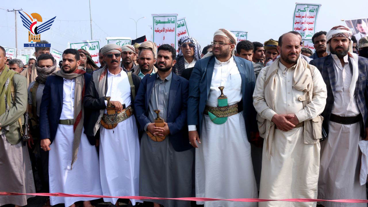 وندد المشاركون في المسيرات التي حضرها عدد من أعضاء مجلس الشورى ووكلاء المحافظة وقيادات محلية وتنفيذية وأمنية وعسكرية وشخصيات إجتماعية وعلماء، باستمرار جرائم العدو الصهيوني بدعم أمريكي أوروبي.