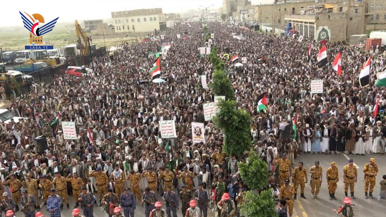 حيث شهدت ساحة الرئيس الشهيد صالح الصماد بمدينة عمران مسيرة حاشدة لأبناء مديريتي عمران وعيال سريح تقدمها المحافظ الدكتور فيصل جعمان، ونائب وزير الشباب والرياضة نبيه أبو شوصا، ومسؤول التعبئة سجاد حمزة وعدد من وكلاء المحافظة، تنديدا بالجرائم والمجازر الوحشية والبشعة التي يرتكبها العدو الصهيوني بحق الشعب الفلسطيني، بمشاركة أمريكية ودعم من بعض الدول الغربية.