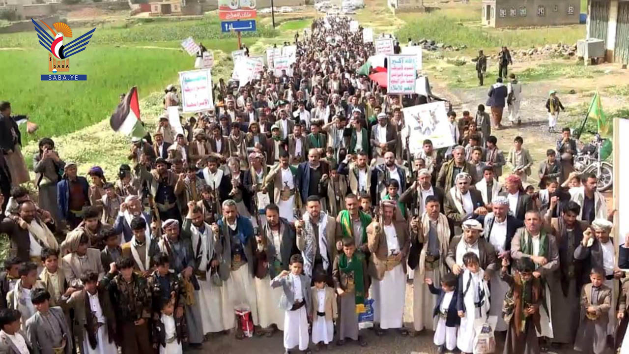 فيما خرجت مسيرات جماهيرية في 43 ساحة بمديريات المحافظة رفع المشاركون فيها العلمين اليمني والفلسطيني.. مؤكدين أن خروجهم يأتي استجابة لله ولرسوله وللهداة من عباده وجهادا في سبيل الله وابتغاء لمرضاته.