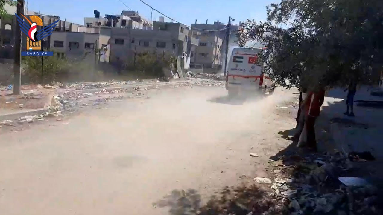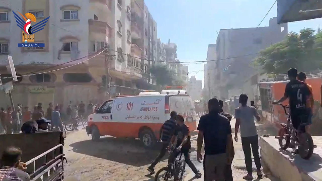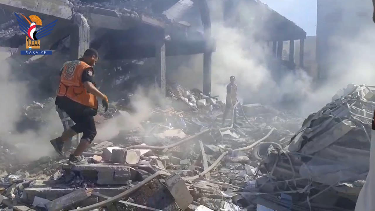 مراسل (سبأ) يرصد اللحظات الأولى لاستهداف طائرات العدو مركز إيواء وكلية نماء بمنطقة الصفطاوي شمال غزة