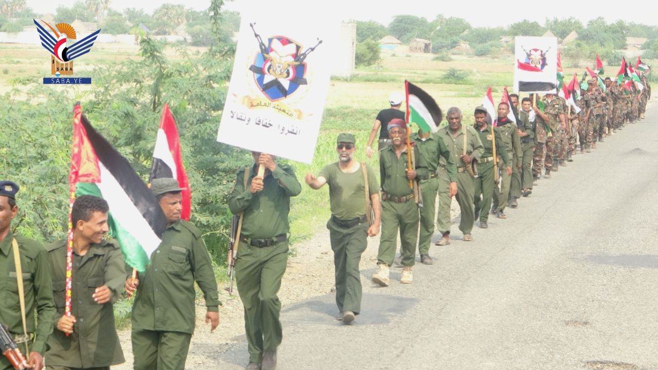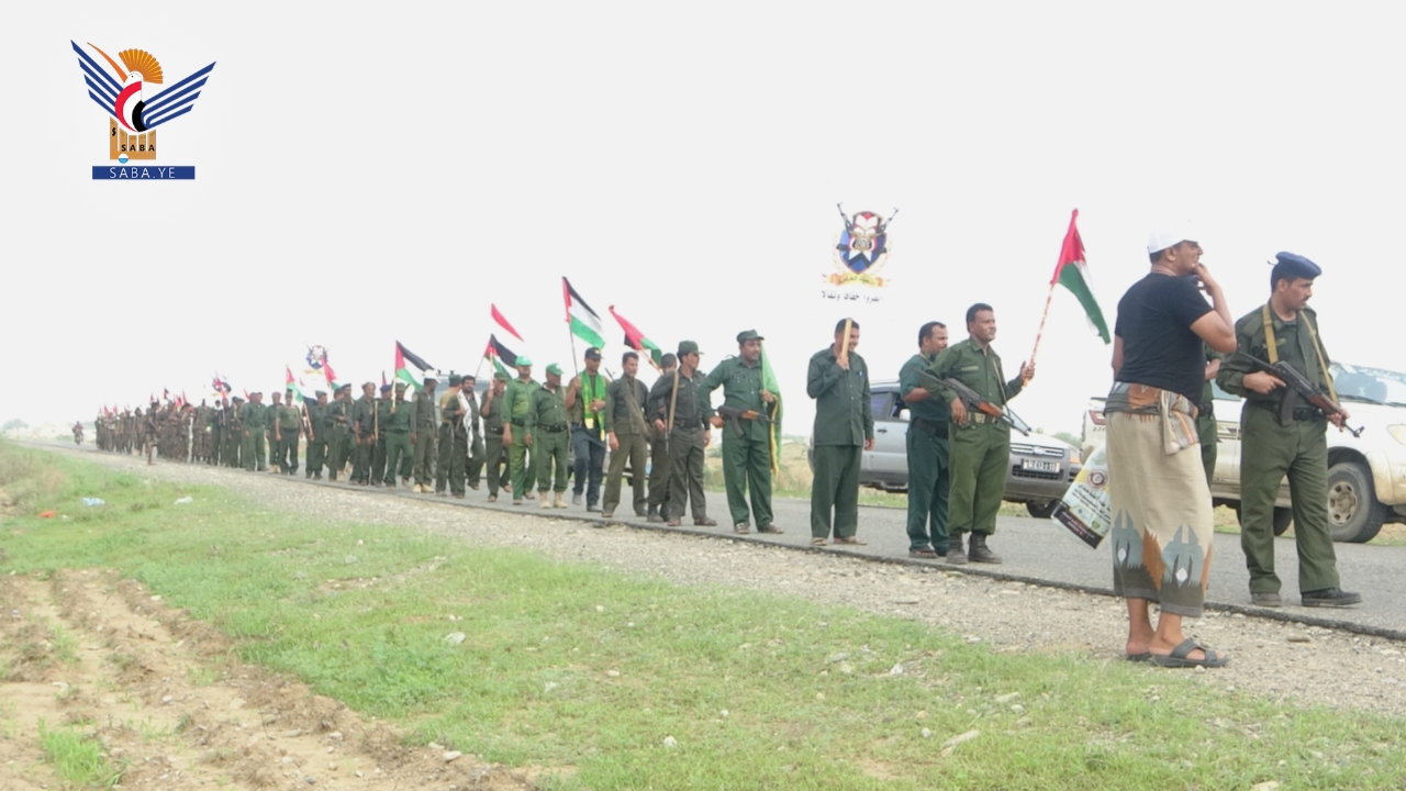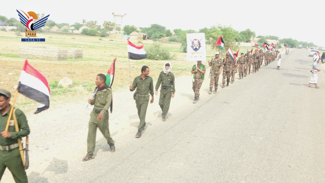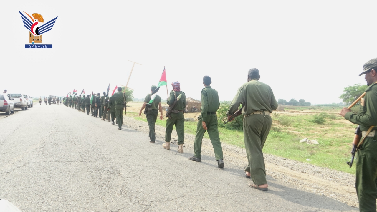 نفذت دفعة من منتسبي الأمن المركزي وإدارة أمن مديرية الزهرة بمحافظة الحديدة من خريجي الدورات العسكرية المفتوحة للمرحلة الخامسة، مسيرا راجلا، في إطار التعبئة والحشد لنصرة فلسطين.