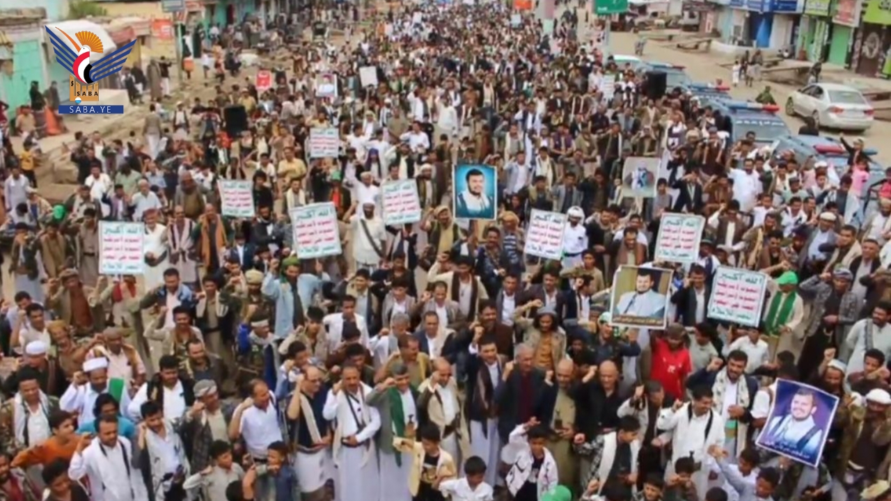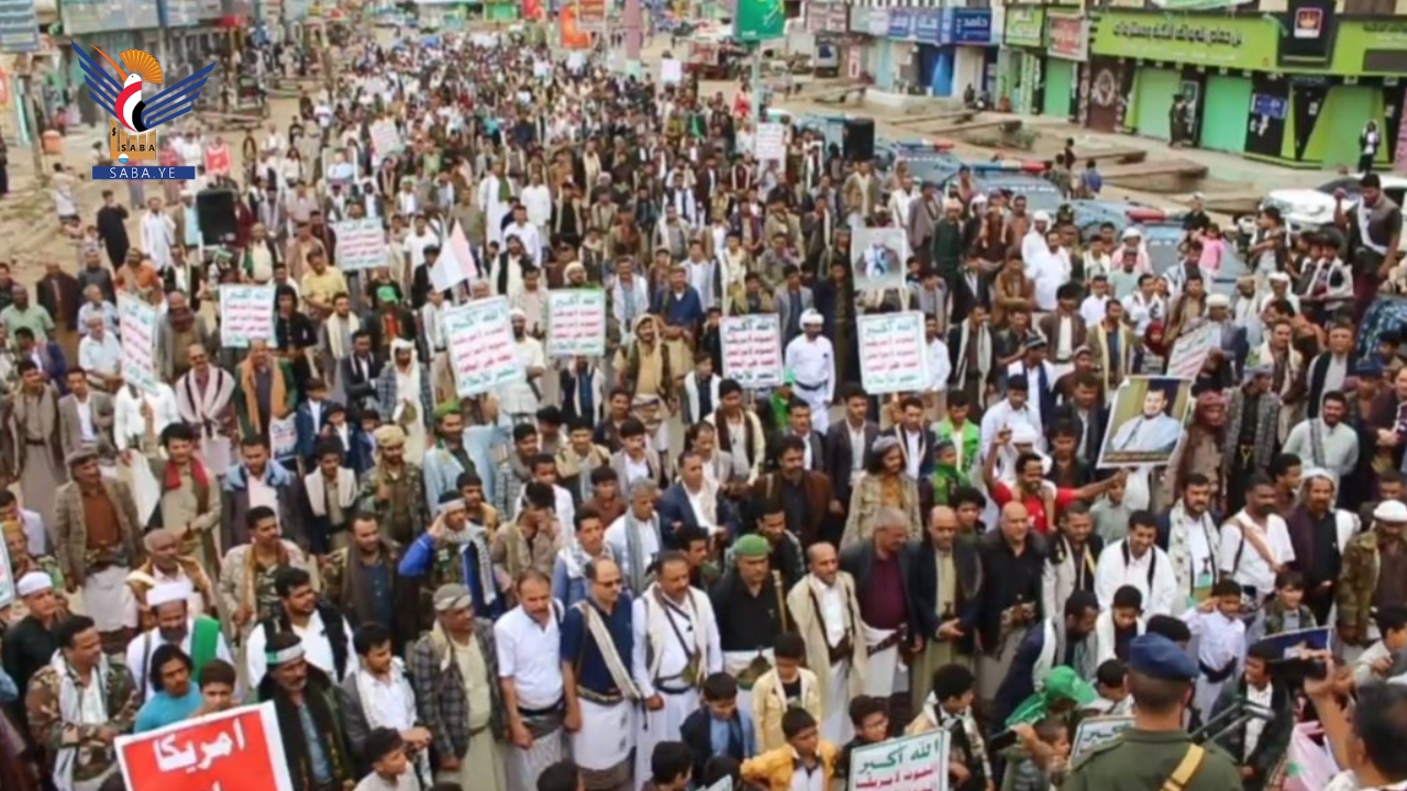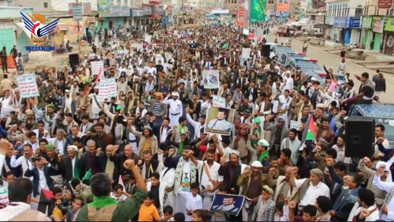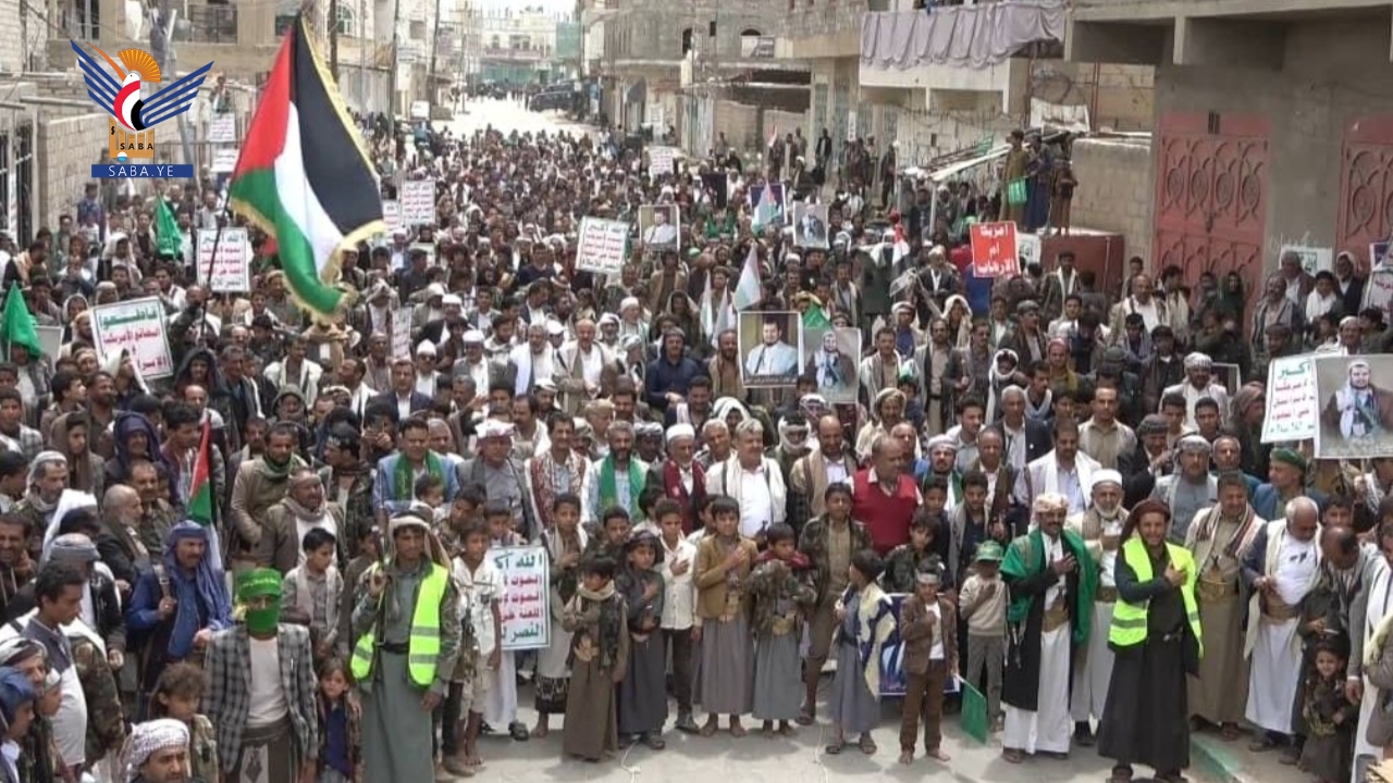 وأكد بيان المسيرات والوقفات أن هذا الخروج الجماهيري يأتي استجابة لدعوة قائد الثورة السيد عبدالملك بدر الدين الحوثي لمواجهة التصعيد الإسرائيلي الأمريكي في المنطقة واستمرار المجازر الجماعية بقطاع غزة .