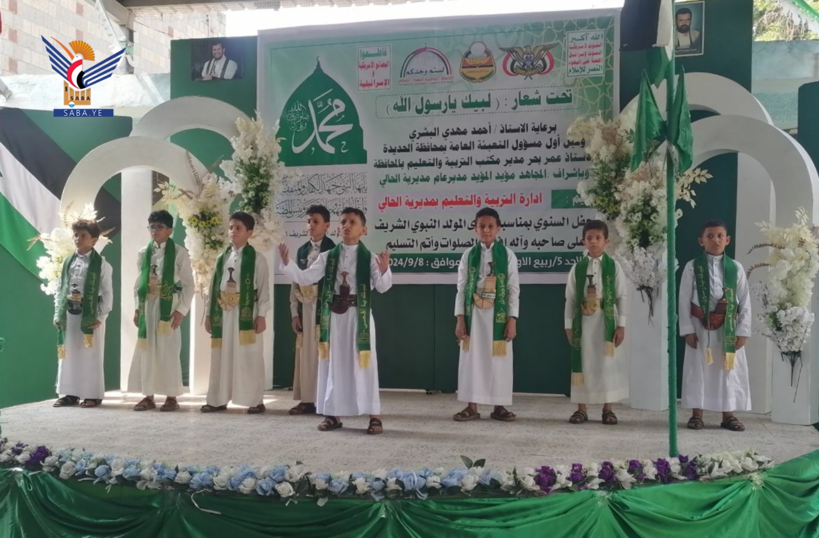 في حين شهدت عدد من المدارس في مديريات محافظة الحديدة فعاليات ثقافية، بحضور عدد من وكلاء المحافظة؛ تعبيرا عن الحفاوة بقدوم المولد النبوي الشريف.