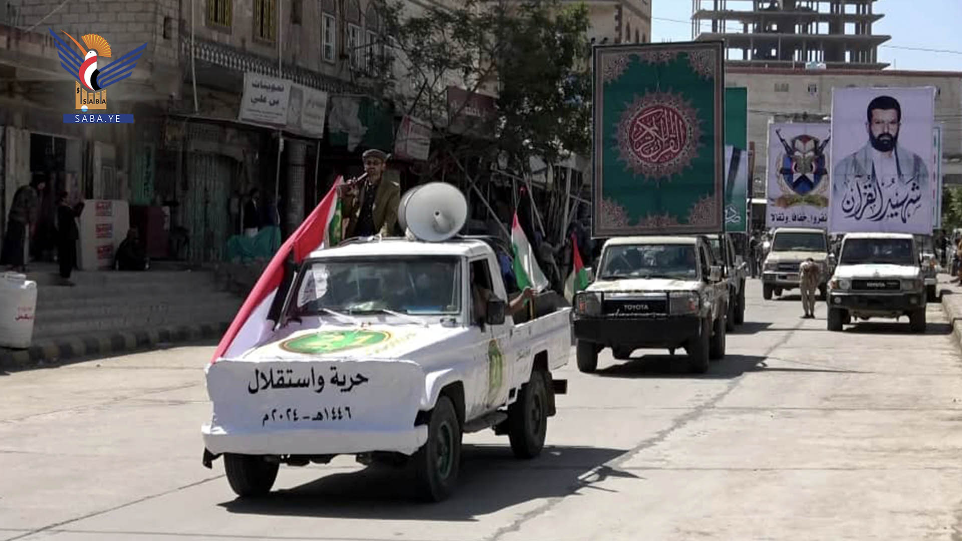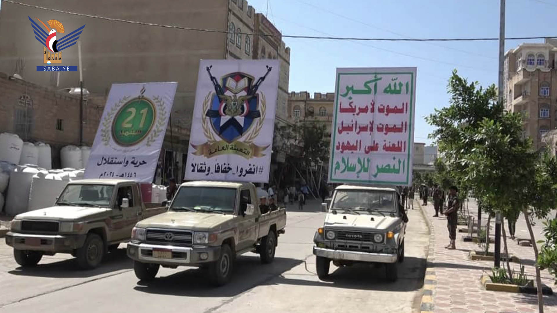 وخلال العرض أكد القائم بأعمال المحافظ الشغدري أن ثورة ٢١ سبتمبر جسدت ما صار إليه اليمن من حرية واستقلال بعد التعبئة والارتهان للخارج وللسفارات الامريكية والسعودية.