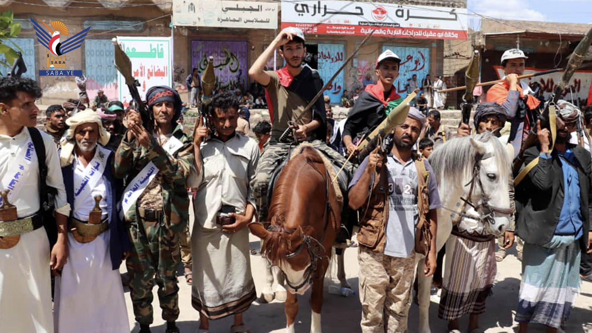 وقدم المشاركون، الذين تقدمهم القائم بأعمال محافظ الضالع عبد اللطيف الشغدري ومسؤول التعبئة العامة أحمد ثابت المراني. ونائب مدير أمن المحافظة عبده أمير الدين الحوثي عرضا شعبييا على شكل سرايا بالزي الشعبي حاملين أسلحتهم الشخصية، ورافعين العلمين اليمني والفلسطيني وشعار المناسبة.