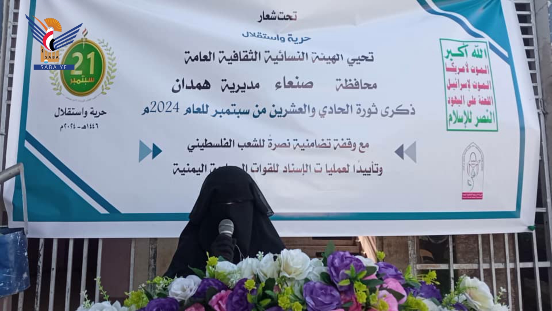 وفي سياق متصل نظمت الهيئة النسائية في مديرية همدان ، محافظة صنعاء، اليوم فعالية خطابية بمناسبة العيد العاشرة لثورة 21 سبتمبر المجيدة.