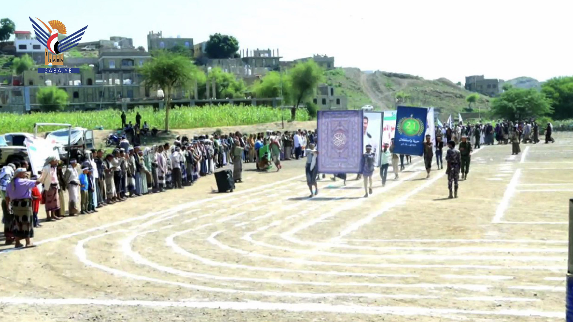نظمت مديريتا خدير والصلو بمحافظة تعز، اليوم، عرضاً عسكرياً شعبياً لخريجي قوات التعبئة العامة، احتفاءً بالعيد العاشر لثورة 21 سبتمبر، وتضامناً مع الشعبين الفلسطيني واللبناني.