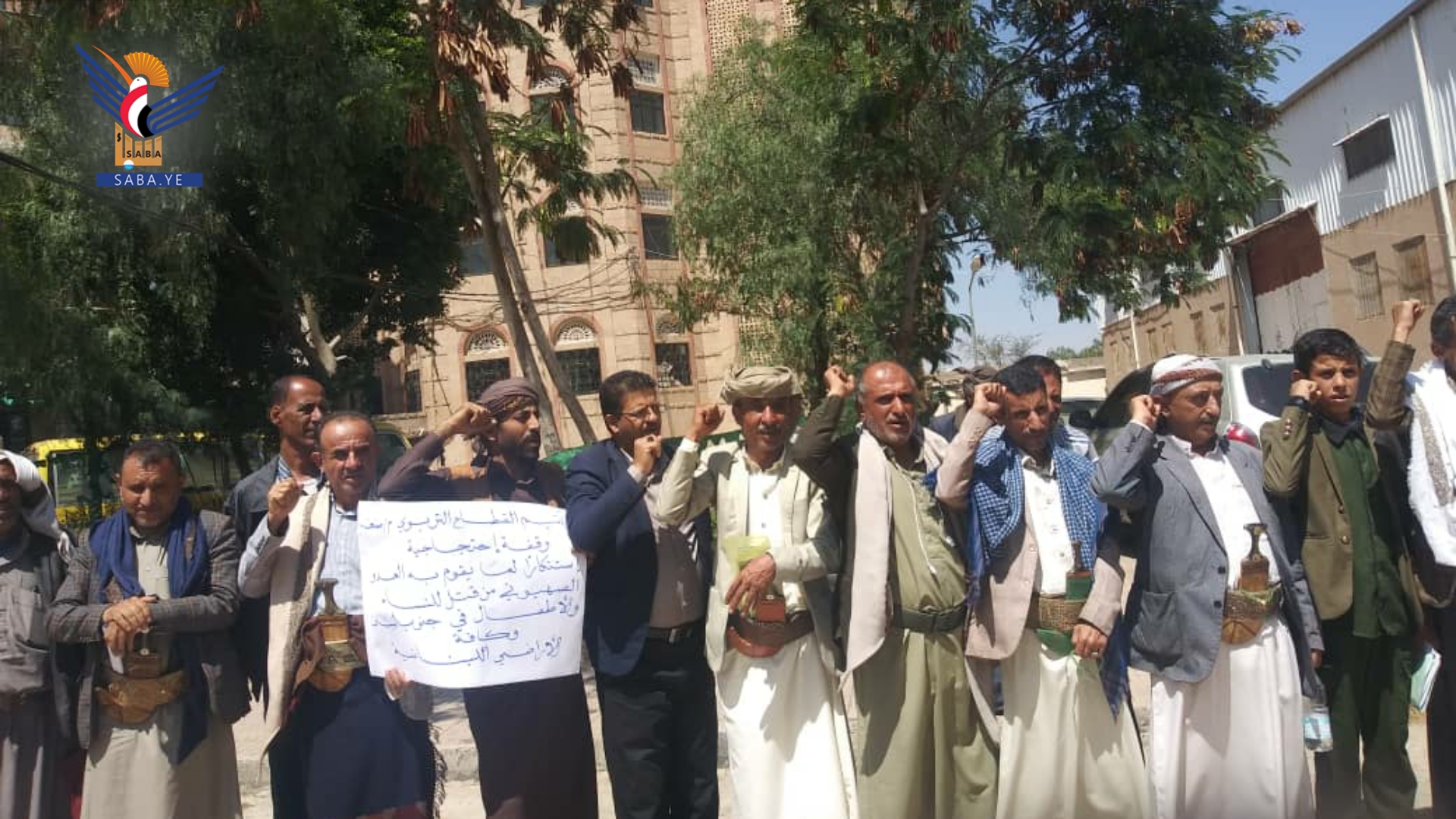نظم القطاع التربوي في محافظة صنعاء، اليوم، وقفة احتجاجية؛ تنديدا بجرائم العدو الصهيوني بحق الشعبين في فلسطين ولبنان، وإعلان التضامن الكامل معهم.